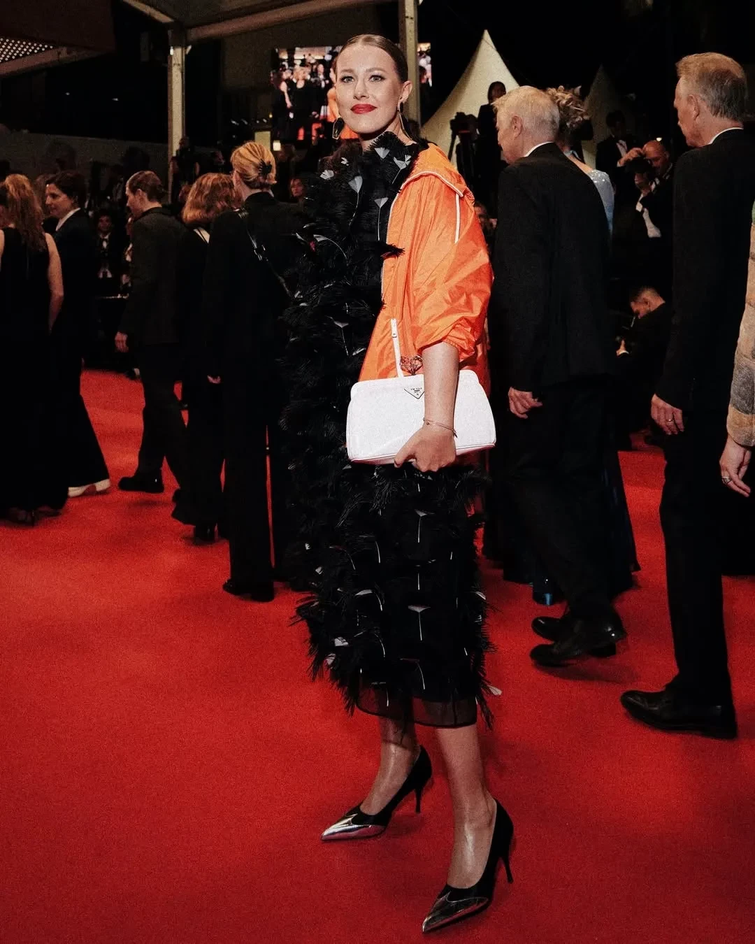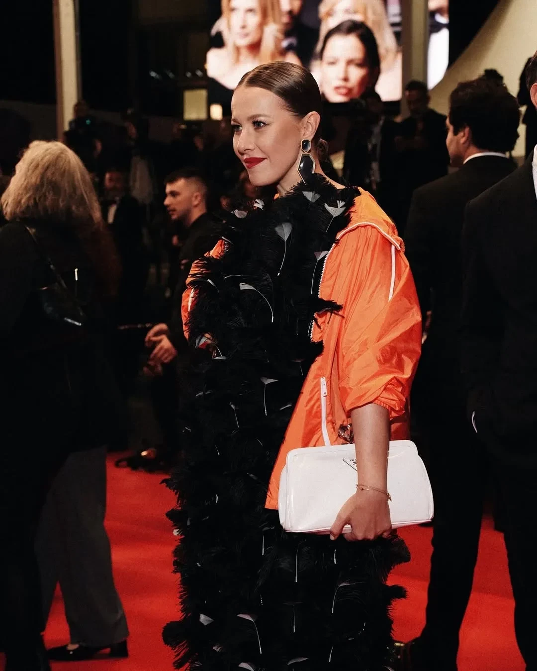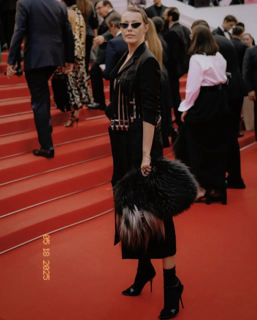 Ксения Собчак в этом году снова прилетела на фестиваль и посетила несколько премьер. На дорожку фильма "Два прокурора" 43-летняя ведущая вышла в тотал-луке Prada, надев платье с перьями с оранжевой ветровкой. На премьеру "Умри, моя любовь" Ксения пришла в "смирительной" рубашке-пиджаке Comme des Garçons и с сумкой Hermes Birkin, а на показе "Досье 137" позировала в костюме с "пушистыми" брюками Phoebe Philo и сумкой Prada. Свой образ Ксения иронично сравнила с персонажем Мистером Тумнусом из "Хроник Нарнии". На просмотр фильма "Эддингтон" Ксения пришла "на скромном": в платье Prada и пальто Comme des Garçons, дополнив образ меховой сумкой Maison Margiela.