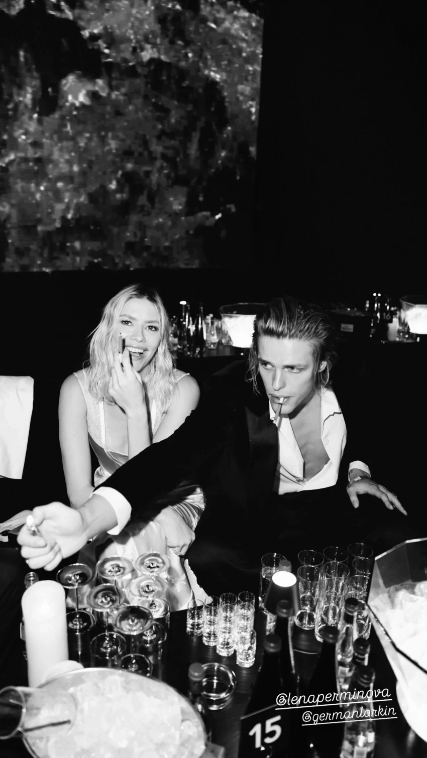 Для выхода в свет модель выбрала наряд в бельевом стиле российского дизайнера Daniil Antsiferov с атласным корсетом и имитацией полурасстёгнутой юбки. На сам вечер она прибыла в компании бойфренда — 29-летнего манекенщика Тараса Романова.