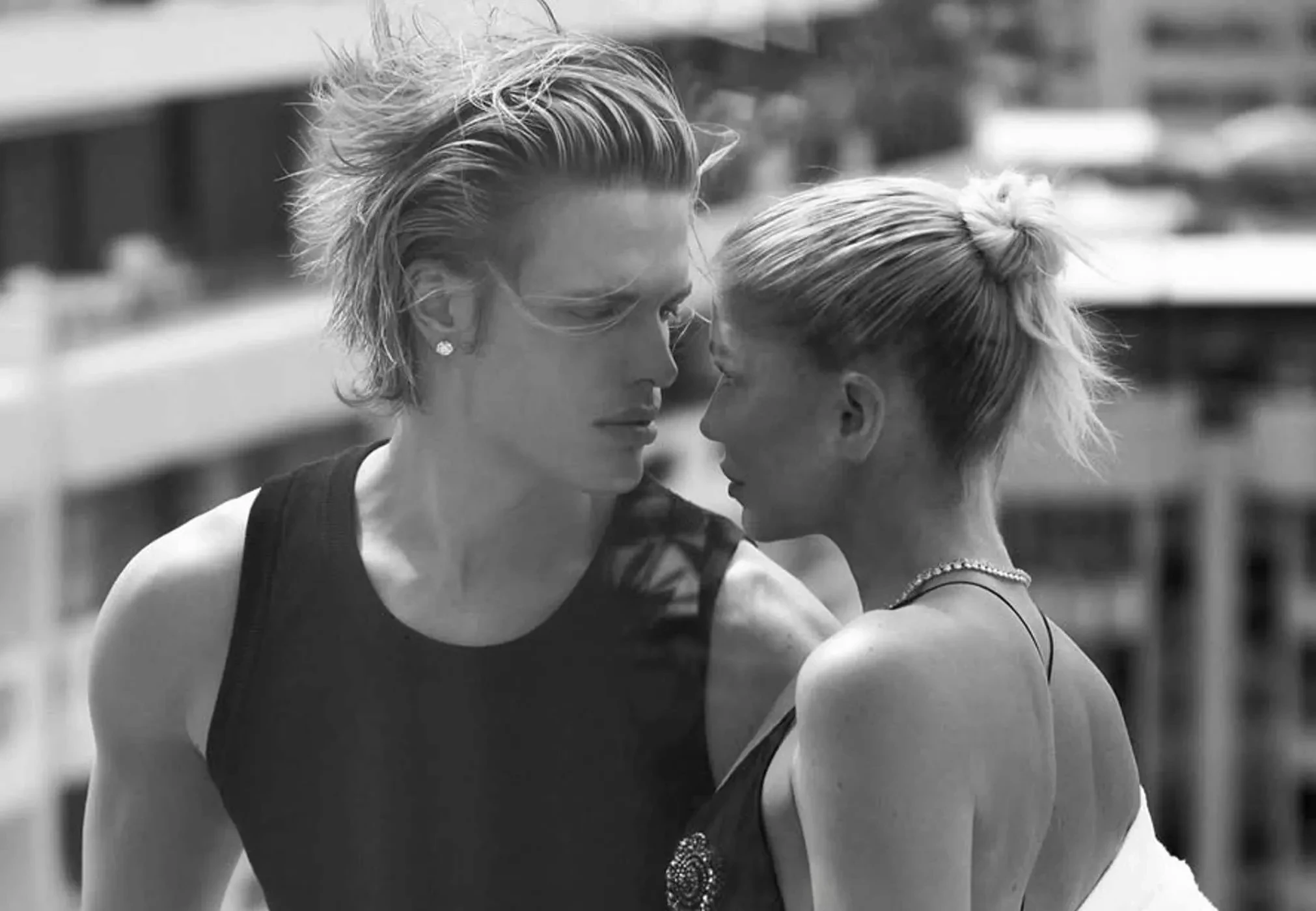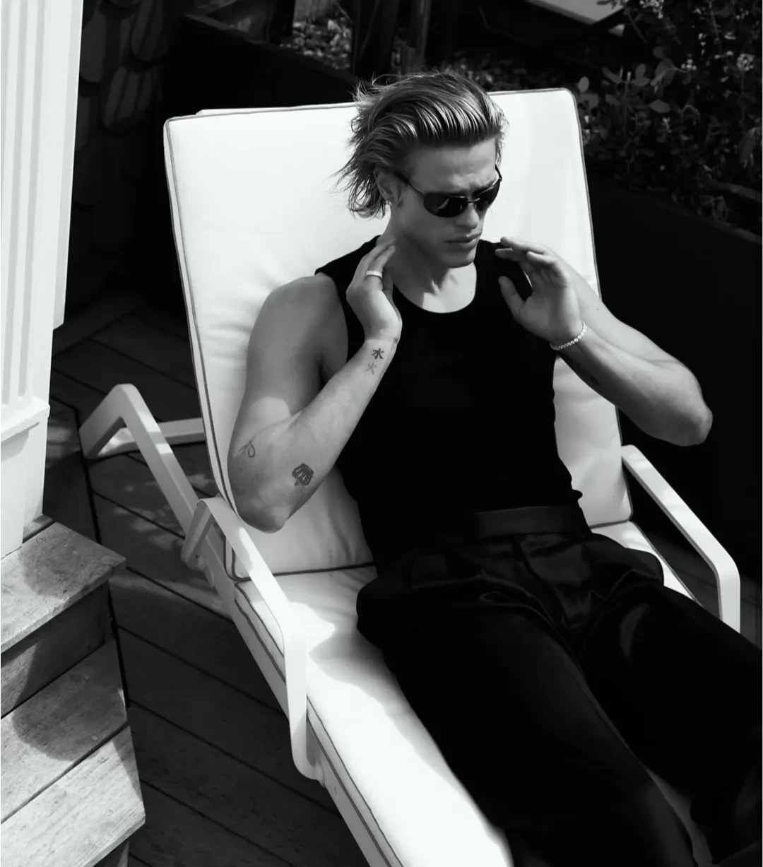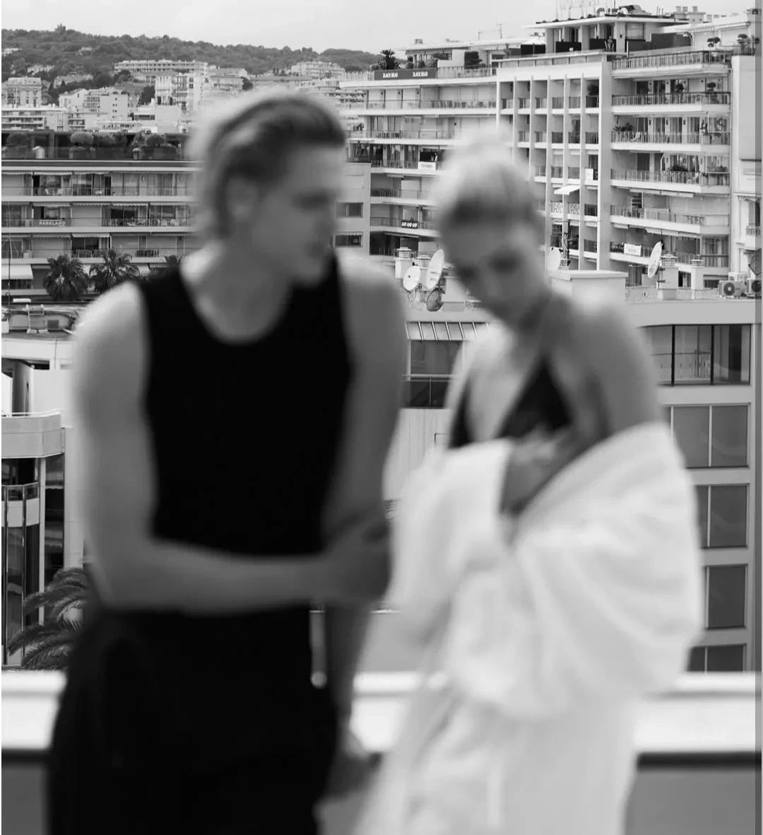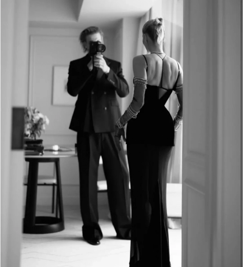 На некоторых снимках манекенщик запечатлён один, на некоторых — с Еленой. В подборку вошёл кадр, на котором Романов и Перминова пристально смотрят друг на друга, стоя на балконе отеля.