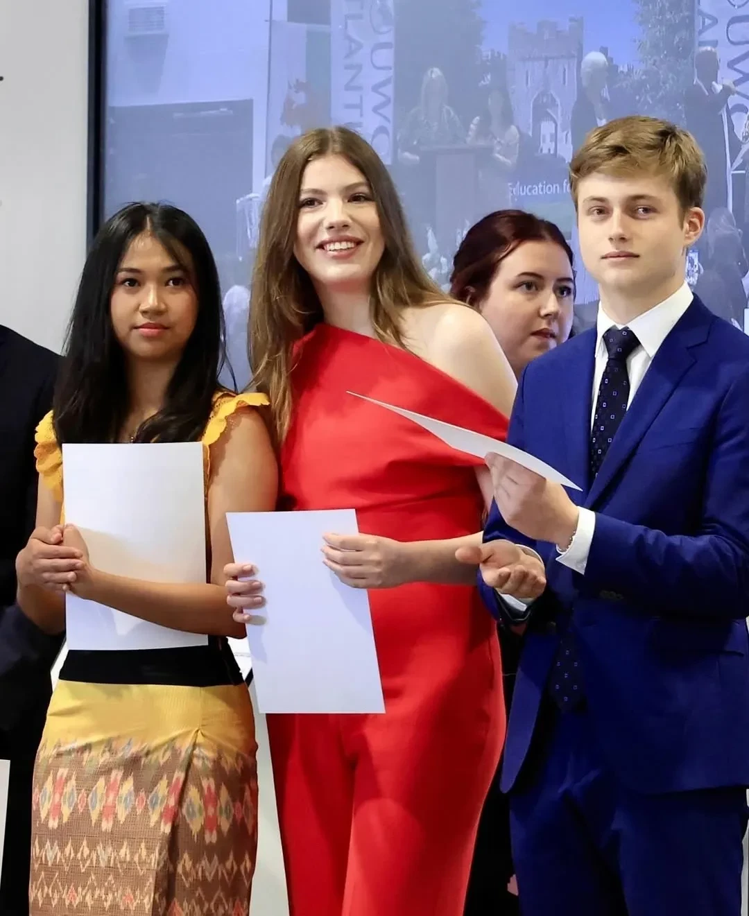 На церемонию вручения дипломов девушка пришла в ярко-красном комбинезоне. Летиция, которая тоже посетила мероприятие вместе с мужем, выбрала брючный костюм того же цвета. Фотографии с события позже были опубликованы в официальных сетях королевской семьи.
