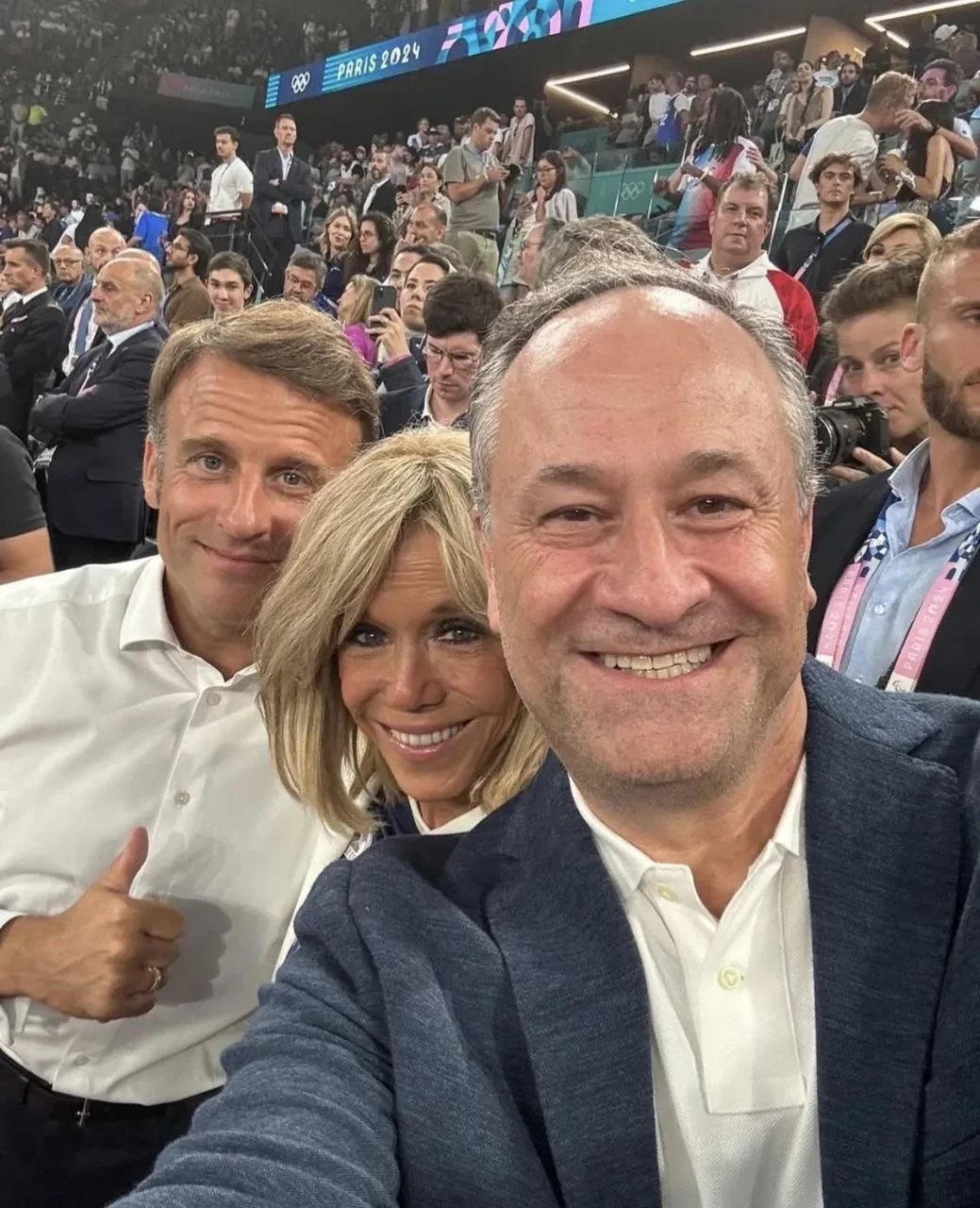 В соцсетях завирусились кадры после посадки самолёта с французской делегацией в аэропорту Вьетнама: в момент, когда люк воздушного судна открывается, видно, что Макрон получает от кого-то в красной одежде удар по лицу. Из следующего видео становится понятно, что напавшей на Макрона была именно 72-летняя Брижит: президент сходит с трапа, а за ним следует она в красном жакете, при этом игнорируя попытки мужа подать ей руку.