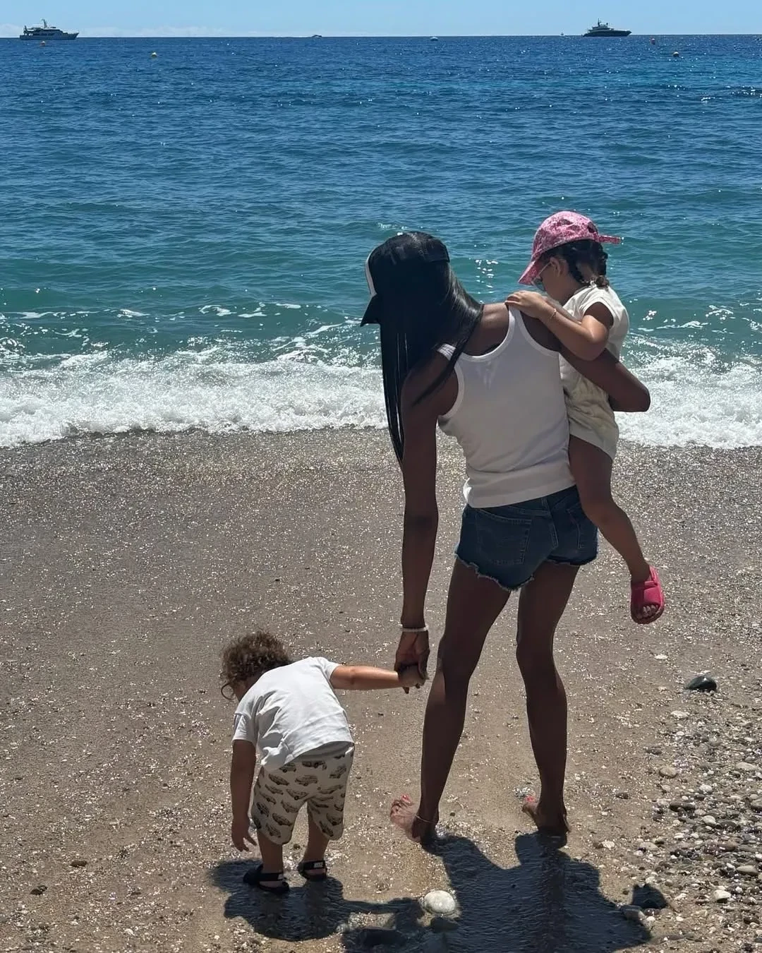 Наоми Кэмпбелл показала редкие фото с двумя своими детьми, отцовство которых скрывает. 55-летняя супермодель была запечатлена с дочерью и сыном на морском побережье.