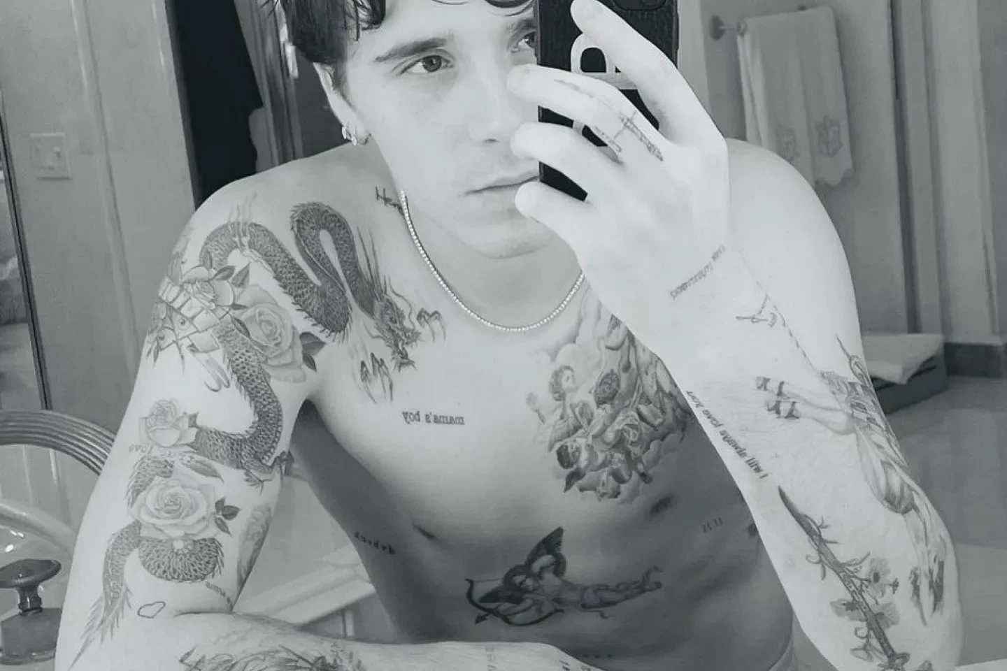 Бекхэм-младший и Пельтц снялись в фотосессии для журнала Glamour, где Бруклин продемонстрировал тело, покрытое узорами. Поклонники пары обратили внимание на то, что надпись "Мамин сын" в районе сердца у него теперь "обрамлена" цветочным рисунком и стала куда менее заметной.