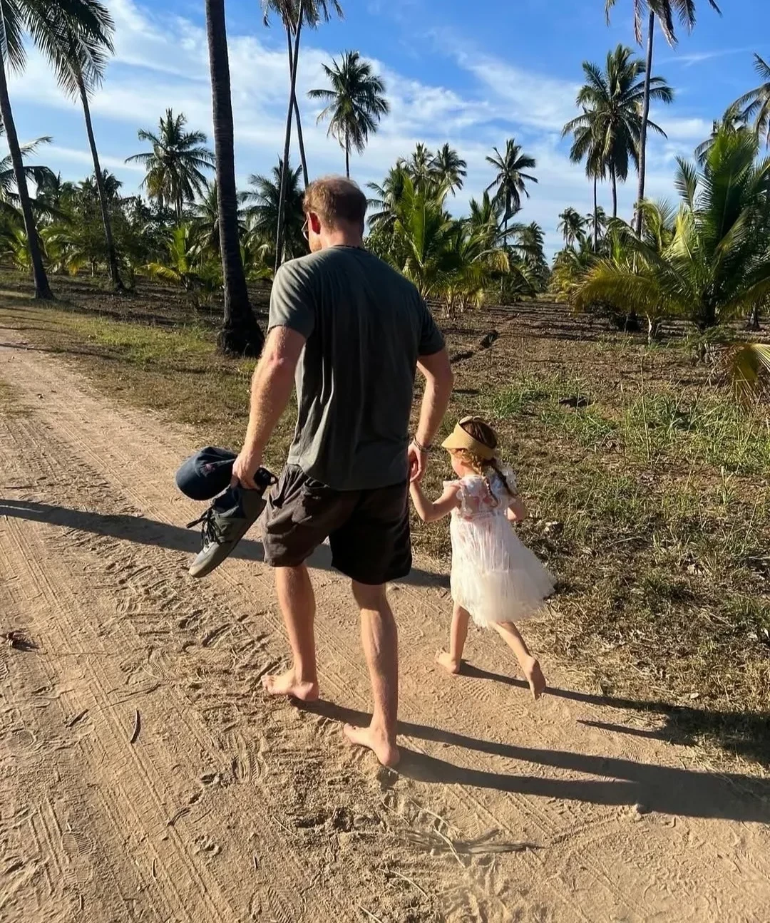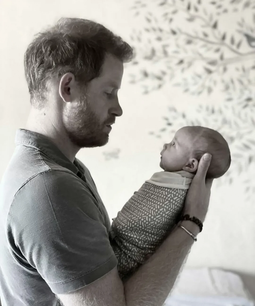 Первый из двух кадров запечатлел момент, когда Гарри взял на руки новорожденную дочь. На втором уже немного повзрослевшая Лилибет в летящем платье и с волосами, заплетенными в косички, гуляет с отцом среди пальм в США.