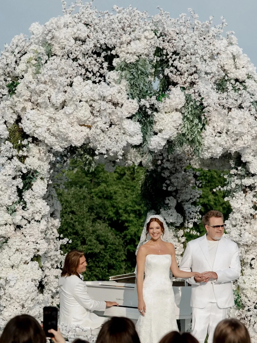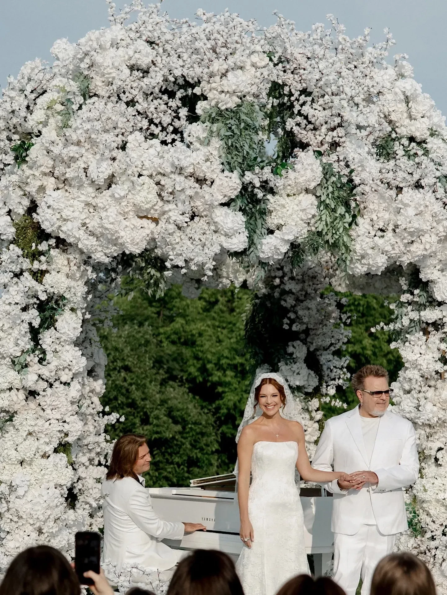 Наталья Подольская и Владимир ПресняковКогда супруги выходили к свадебной арке, Дмитрий Маликов играл на рояле. После же свои хиты спели Григорий Лепс, Лариса Долина, Александр Ревва, а ближе к ночи и сама 43-летняя Наталья исполнила несколько своих композиций. Также она за вечер сменила сразу три платья: сначала Наталья вышла к гостям в классическом свадебном платье, потом переоделась в длинное элегантное платье с открытой спиной, а в конце вечера надела мини-платье.