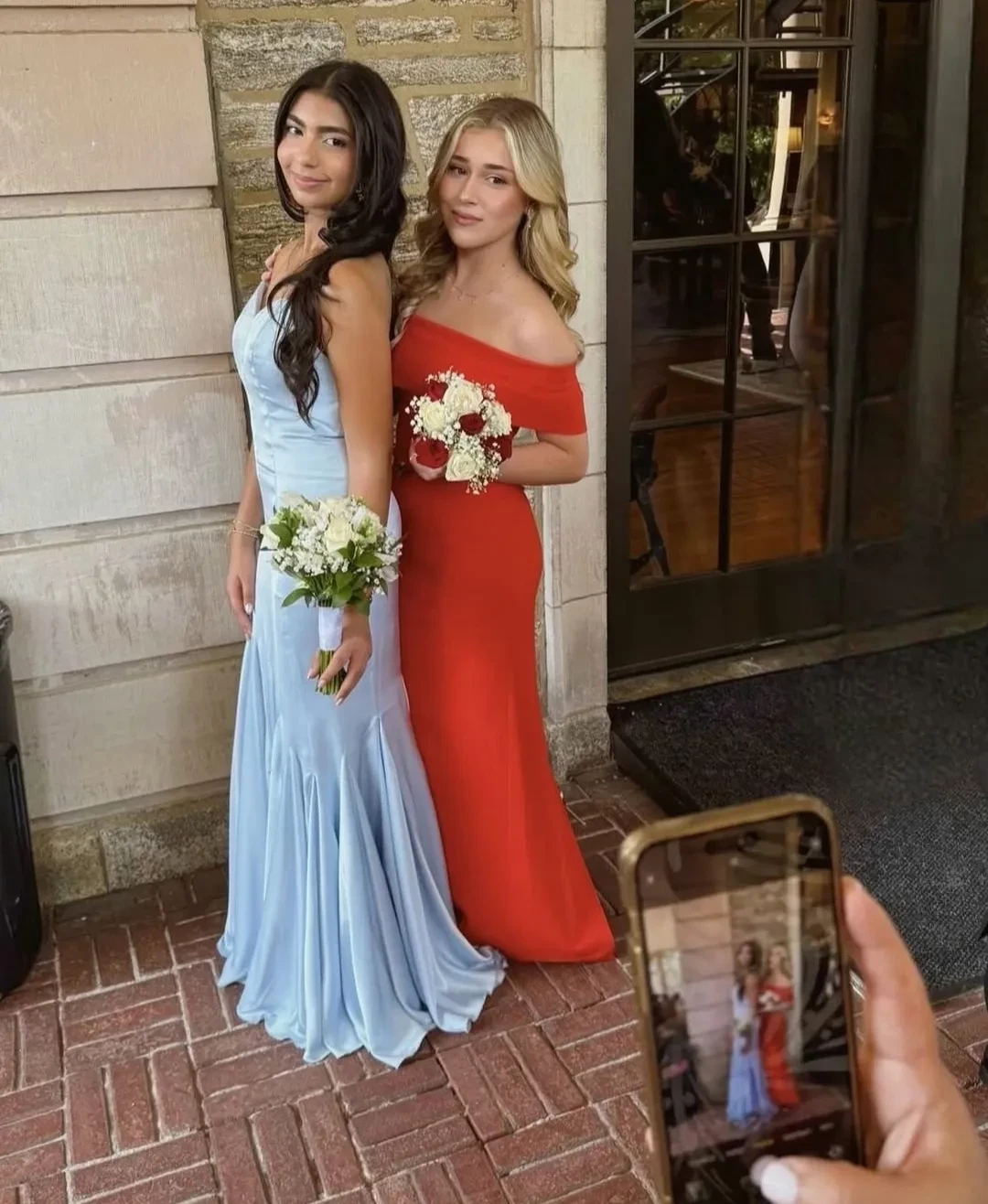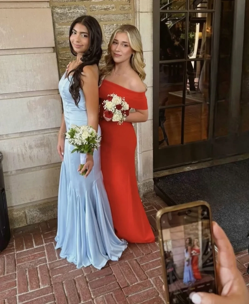 В школе уже прошел выпускной. Микелла пришла на вручение диплома в ярко-красном платье в пол с открытыми плечами. Ее образ дополнял букет из красно-белых роз. Волосы девушка оставила распущенными.