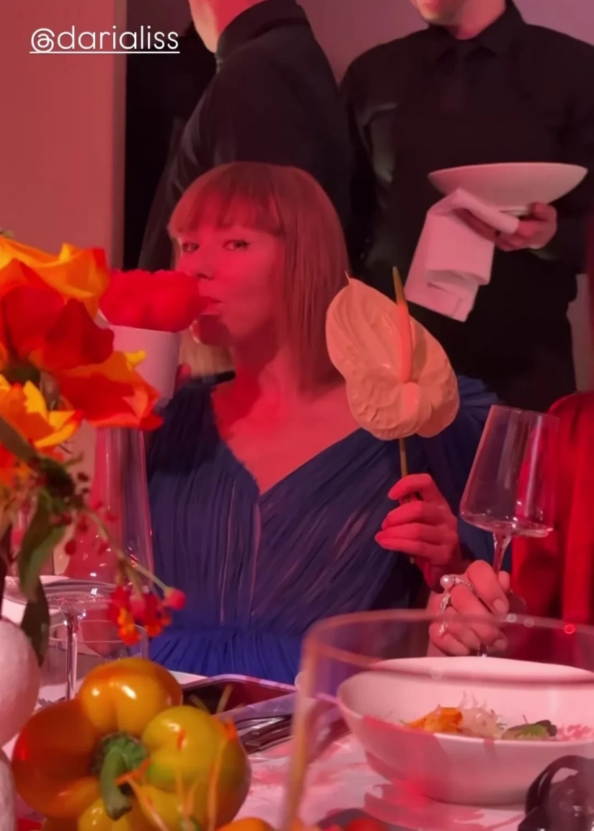 На мероприятии, которое проходило в особняке на Волхонке, собрались многие представители светской Москвы: Виктория Шелягова, Оксана Бондаренко, Ксения Соловьева, Марина Руднева, Ирина Зарькова, Вика Газинская и другие. Многие из них поделились фотографиями и видео с праздника в соцсетях. Судя по репортажам с места событий, гостей усадили за стол, украшенный цветами и фруктами (за сет-дизайн отвечала команда Михаила Друяна), а развлекал их 83-летний Лев Лещенко. Почти все приглашенные не только слушали, но и охотно танцевали под знакомую с детства музыку.