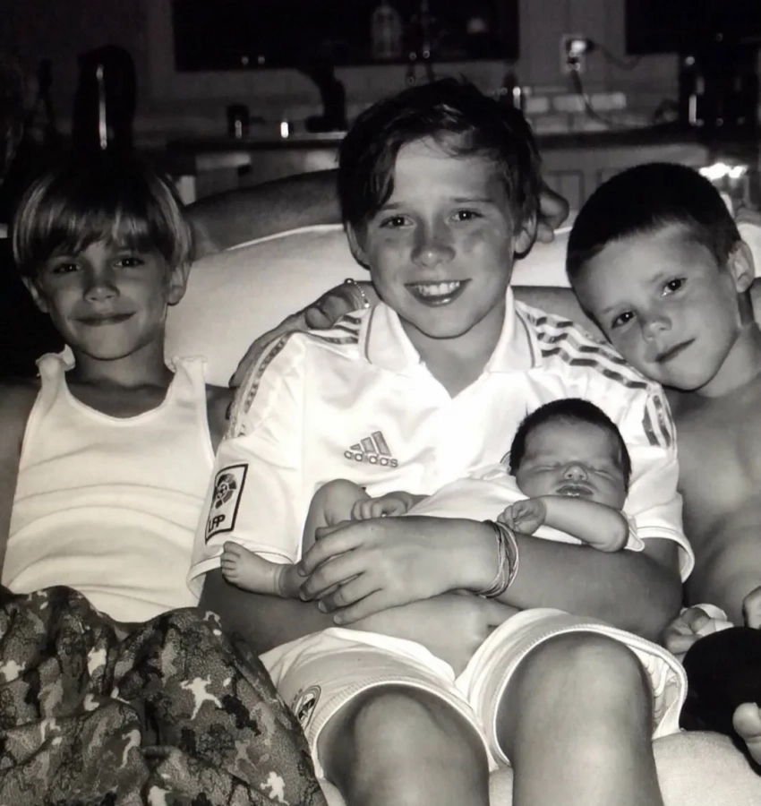 50-летний Дэвид Бекхэм и его 51-летняя жена Виктория по случаю Дня отца опубликовали в соцсетях серию архивных семейных снимков.