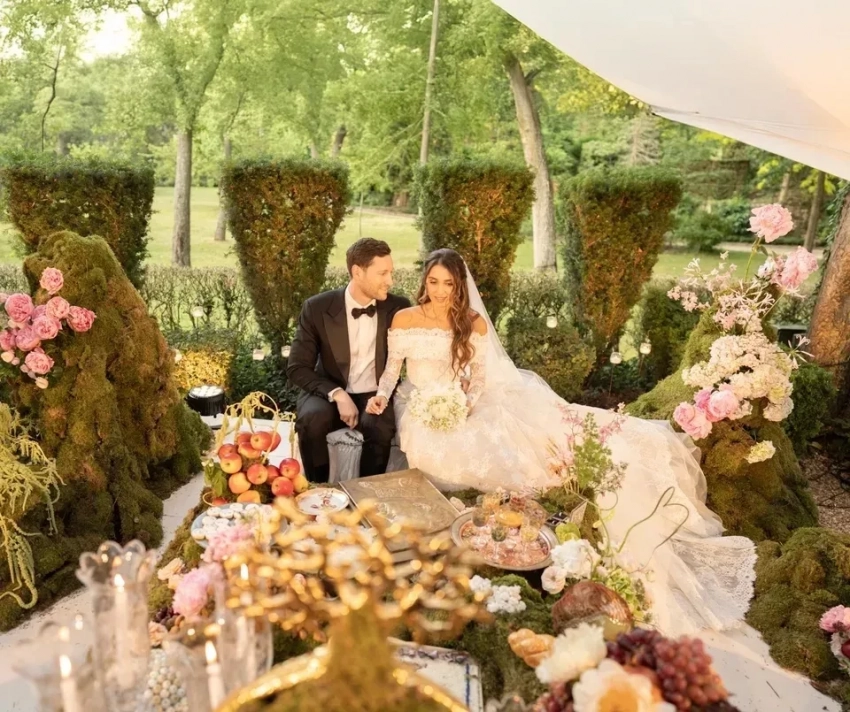 Торжество состоялось во Франции и включало в себя элементы персидских традиций, переосмысленных в современном ключе. К алтарю Иман прошла в кастомном платье Elie Saab, которое на протяжении празднования трансформировалось в три разных образа.