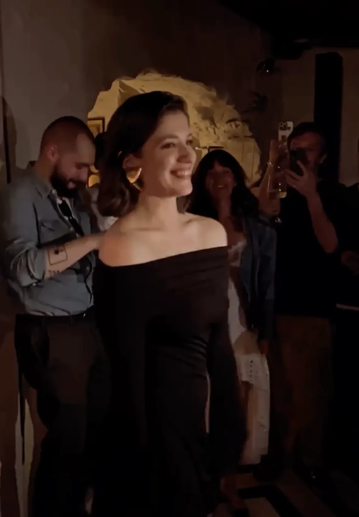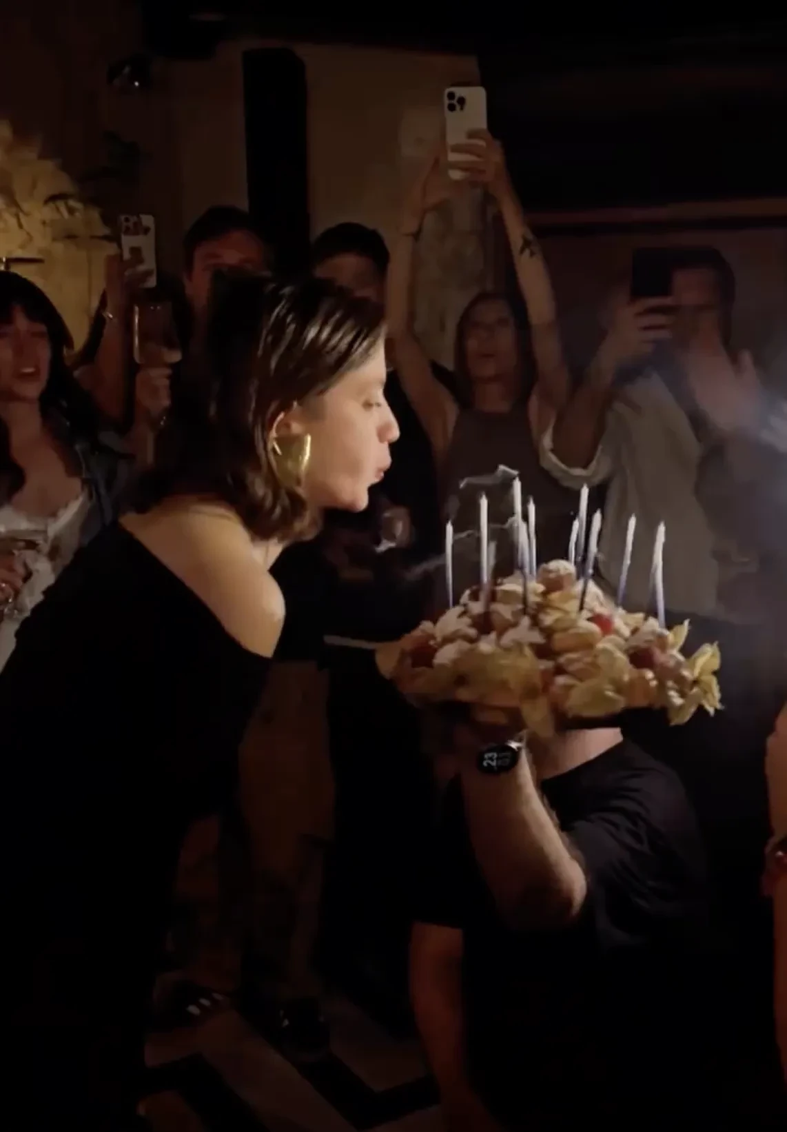 Именинница принимала поздравления в чёрном платье и массивных золотых серьгах. Аня задула свечи на торте под хит Ирины Аллегровой "С Днём рождения", а после танцевала с подругами под Земфиру*.