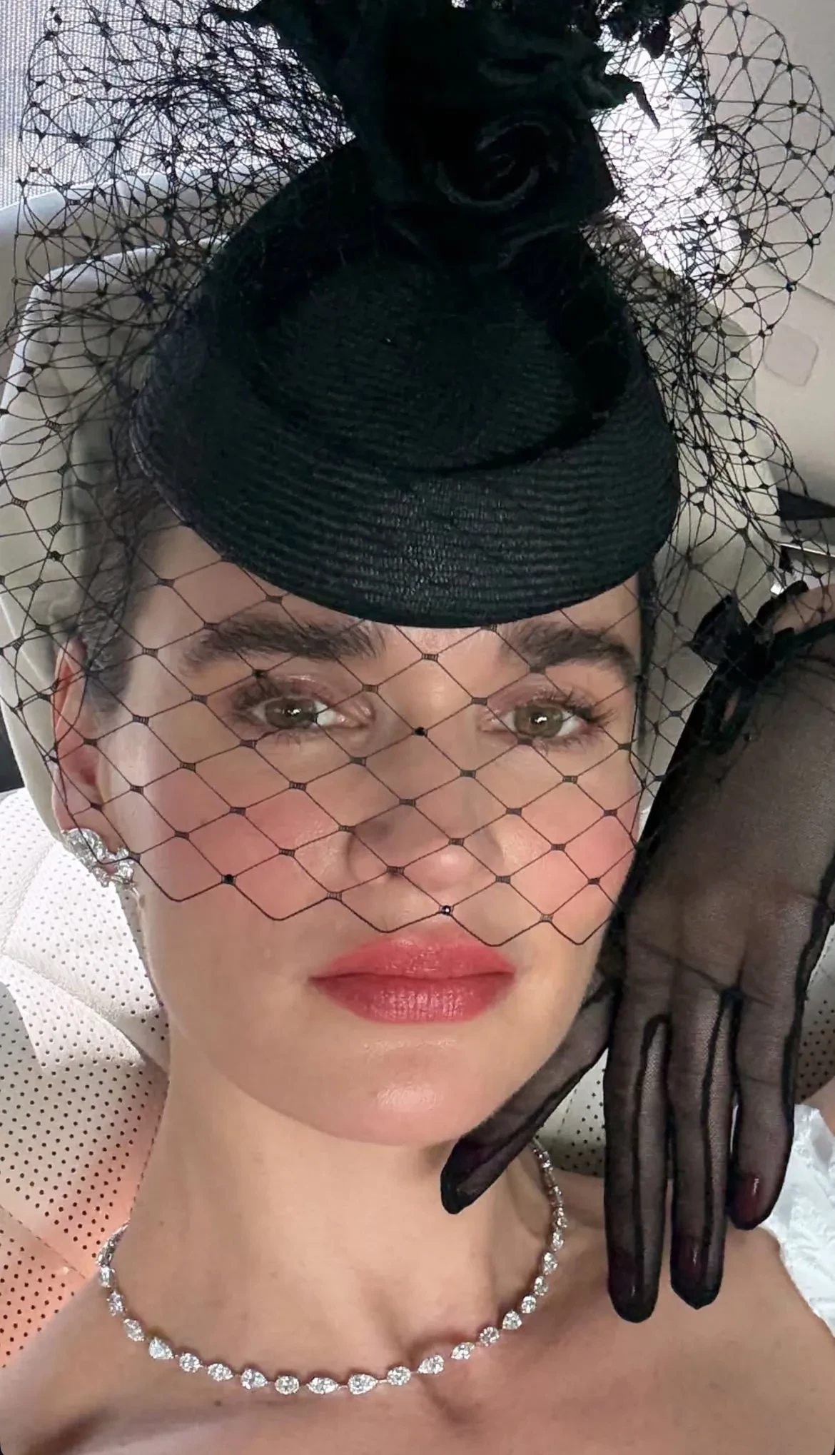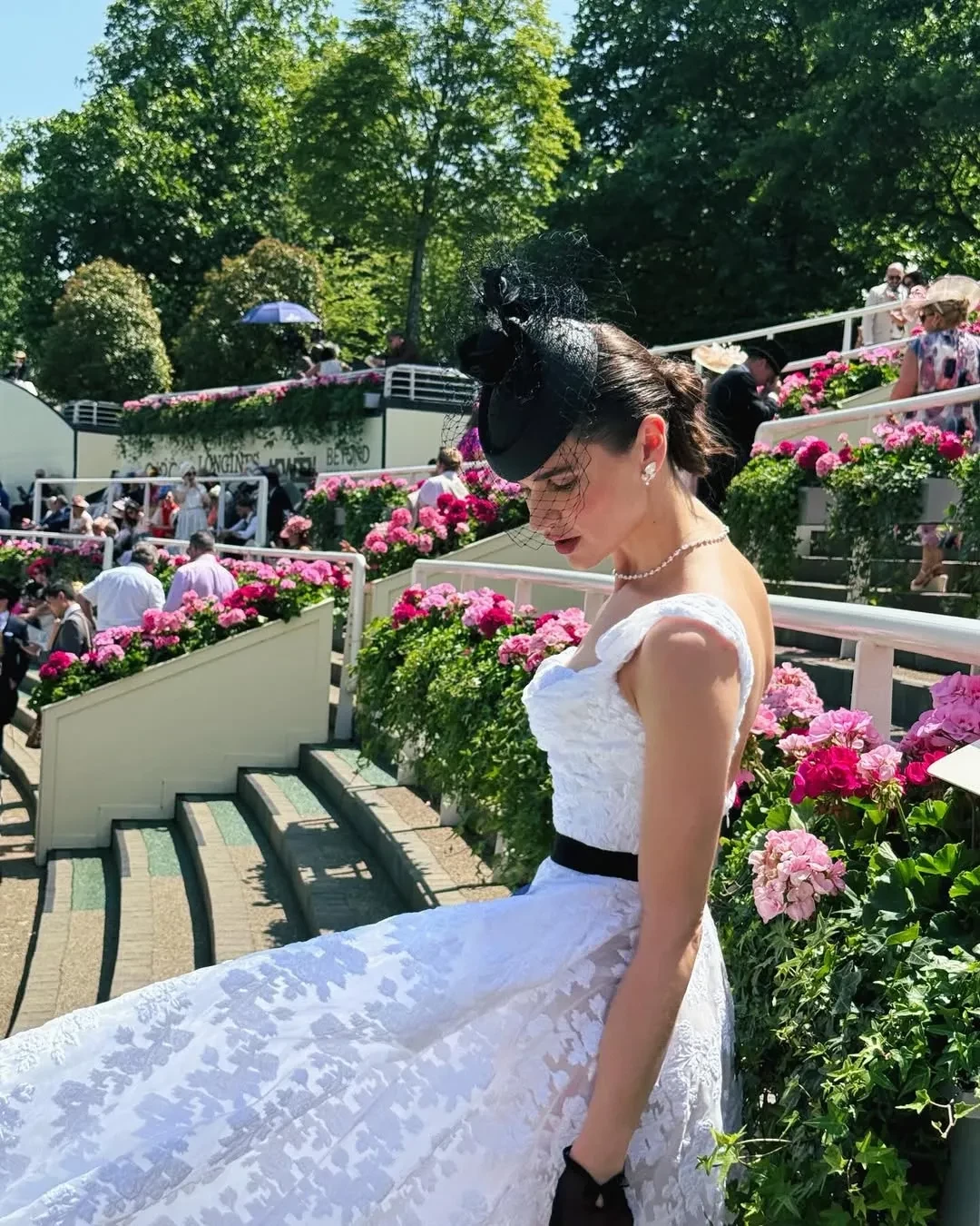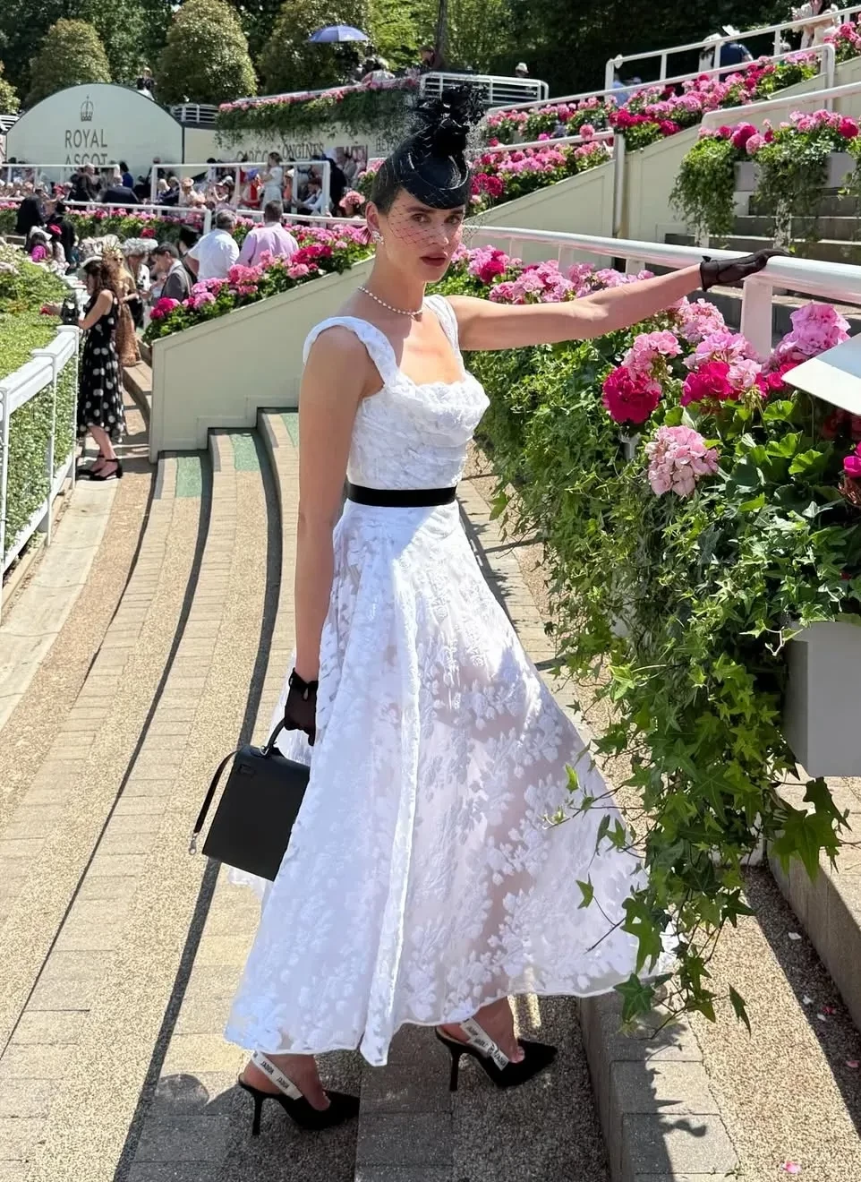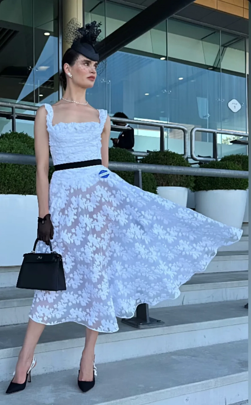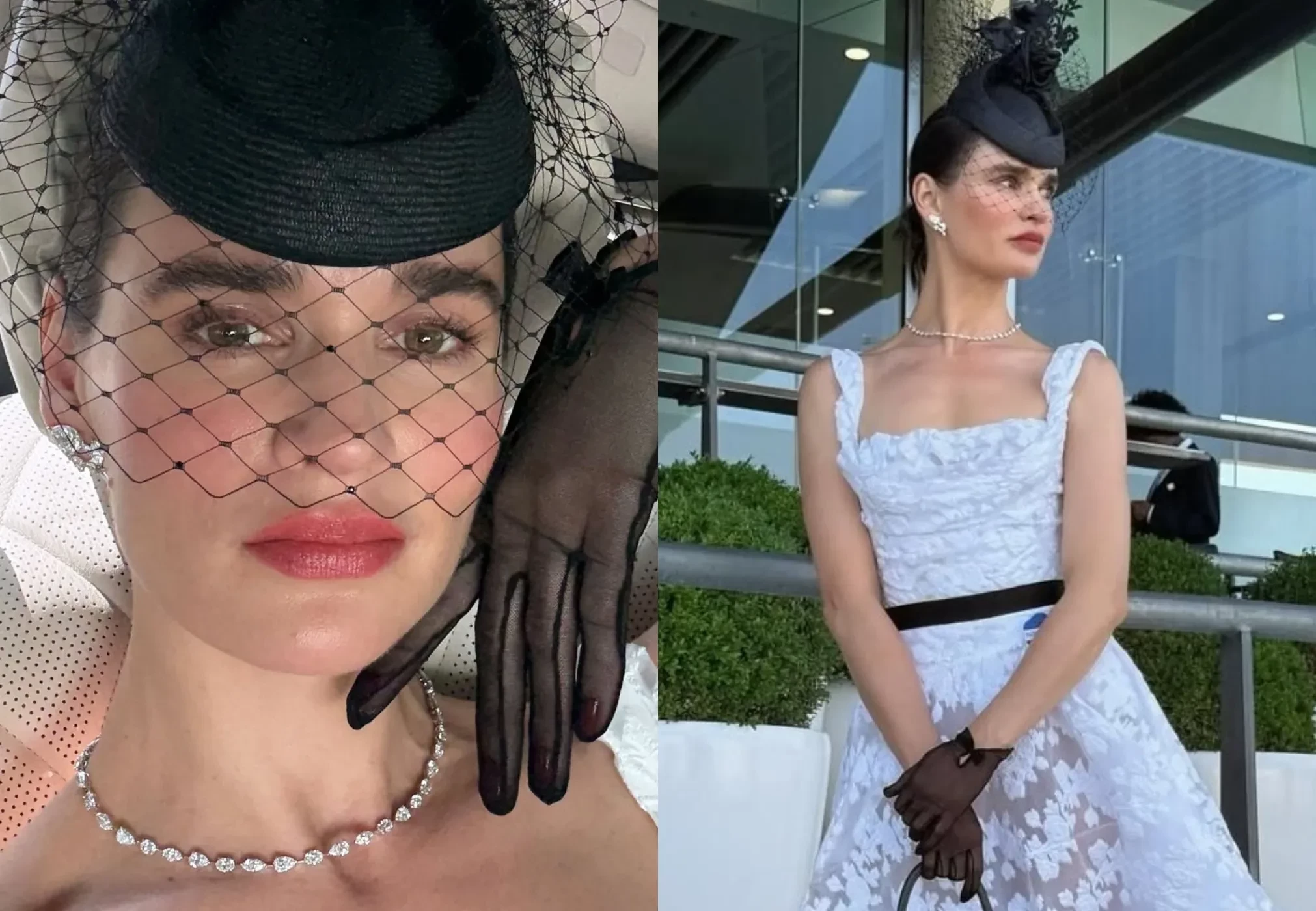 На снимках Татьяна, которая воспитывает четверых детей от водочного магната, купившего долю Анджелины Джоли в её с Брэдом Питтом поместье Château Miraval, позирует в белом кружевном платье, туфлях Dior и с сумкой Hermes. Модель дополнила образ чёрными перчатками, шляпой с вуалью и ювелирными украшениями.