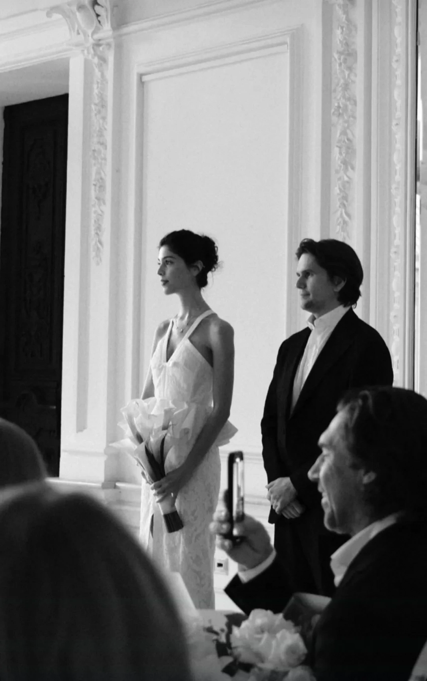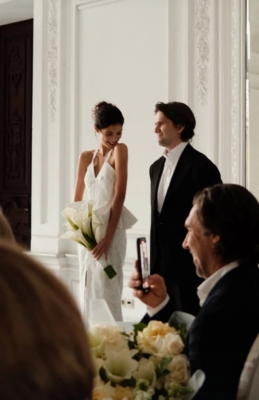 Оксана РимНа роспись Варвара пришла в классическом свадебном платье Giambattista Valli, который она подбирала в ЦУМе. Позже, перед банкетом на крыше “КМ20” невеста сменила наряд на более удобный тотал-лук Jacquemus.