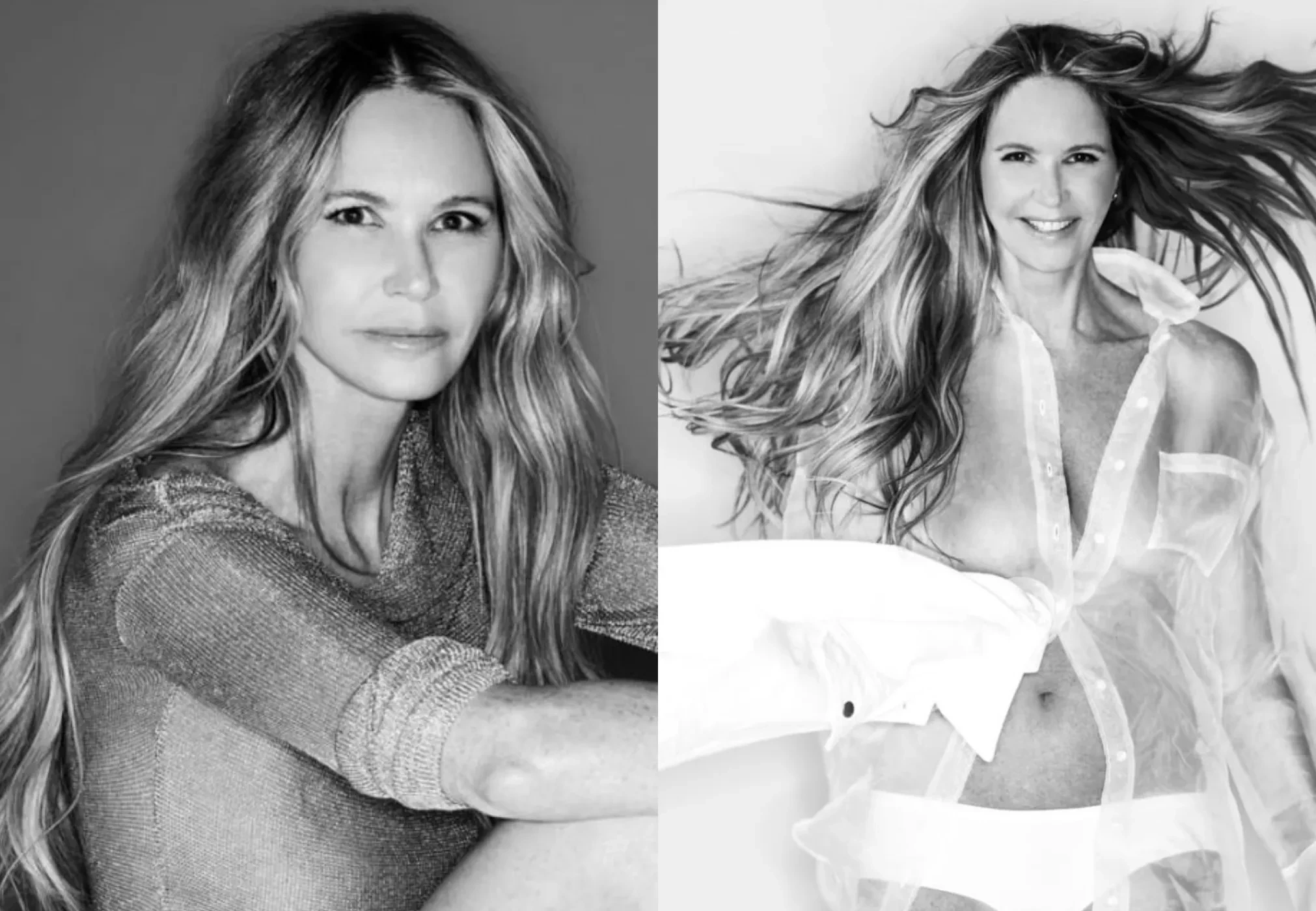 61-летняя Эль Макферсон снялась топлес для обложки журнала Maxim. На снимках супермодель 90-х позирует с едва прикрытой грудью: на одном — её закрывает свитер, обмотанный вокруг тела, а на других — чёрное и блестящее боди. На одной фотографии она появилась в полностью прозрачной рубашке.