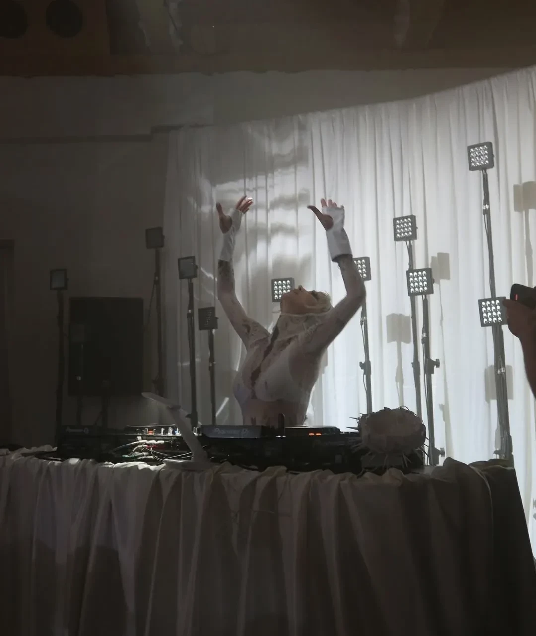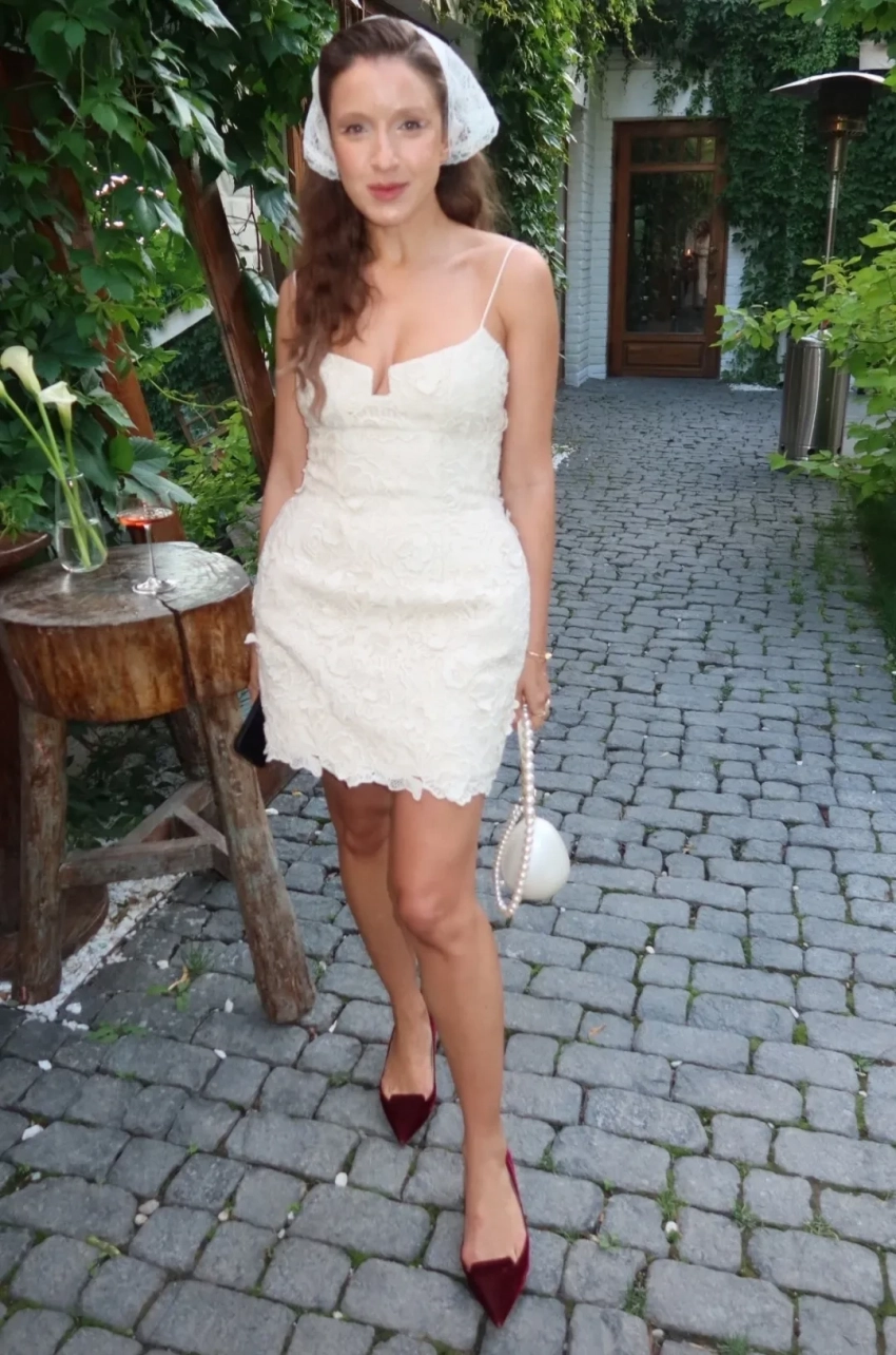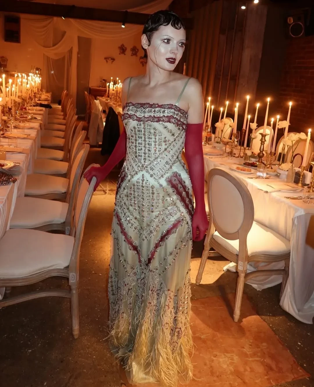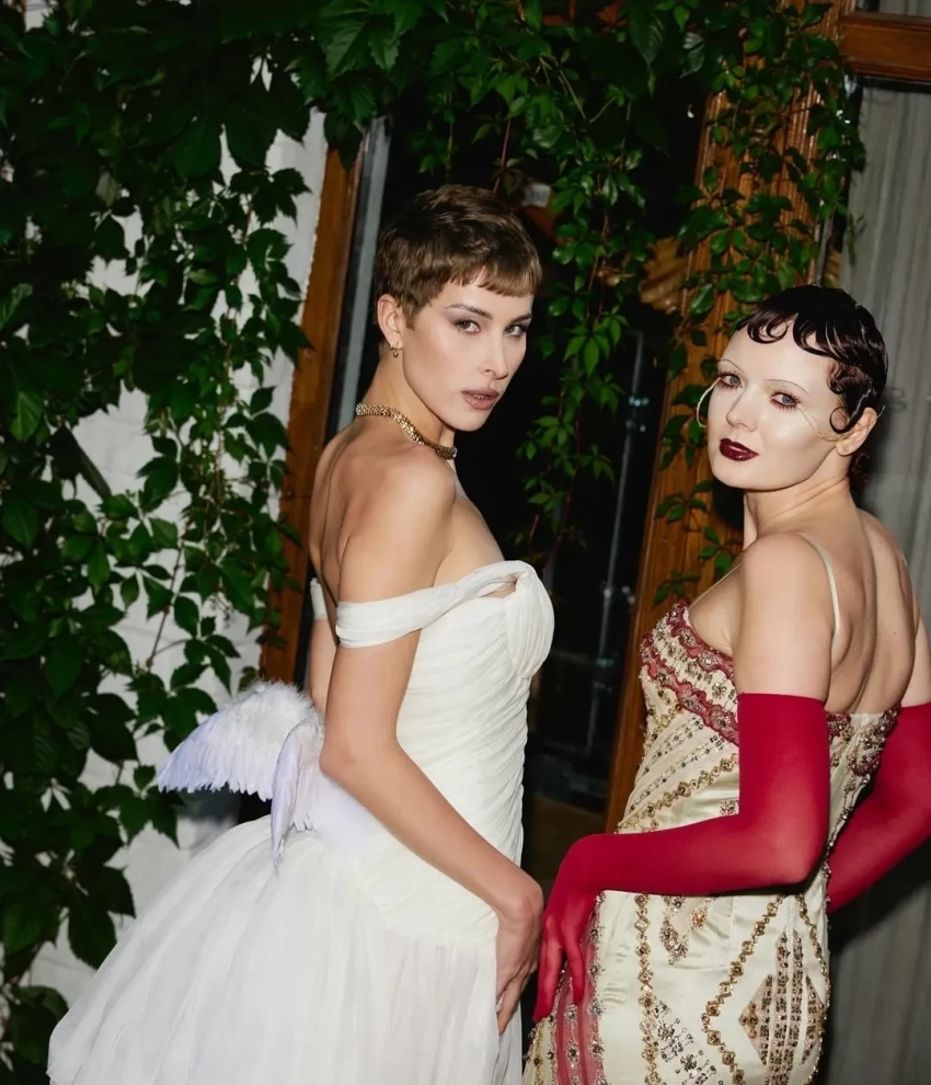 https://t.me/spletnik2006/34156Все гости были одеты соответственно дресс-коду вечера, темой которого были "Ангелы Ренессанса". Повсюду можно было увидеть белые платья с рюшами и кружевами, накладные крылья, корсеты и перья. Даже питомцев их хозяева нарядили в белое. Что касается именинницы, что она выбрала для вечера платье Ильи Migmoon, стилизованное Ксюшей Смо.