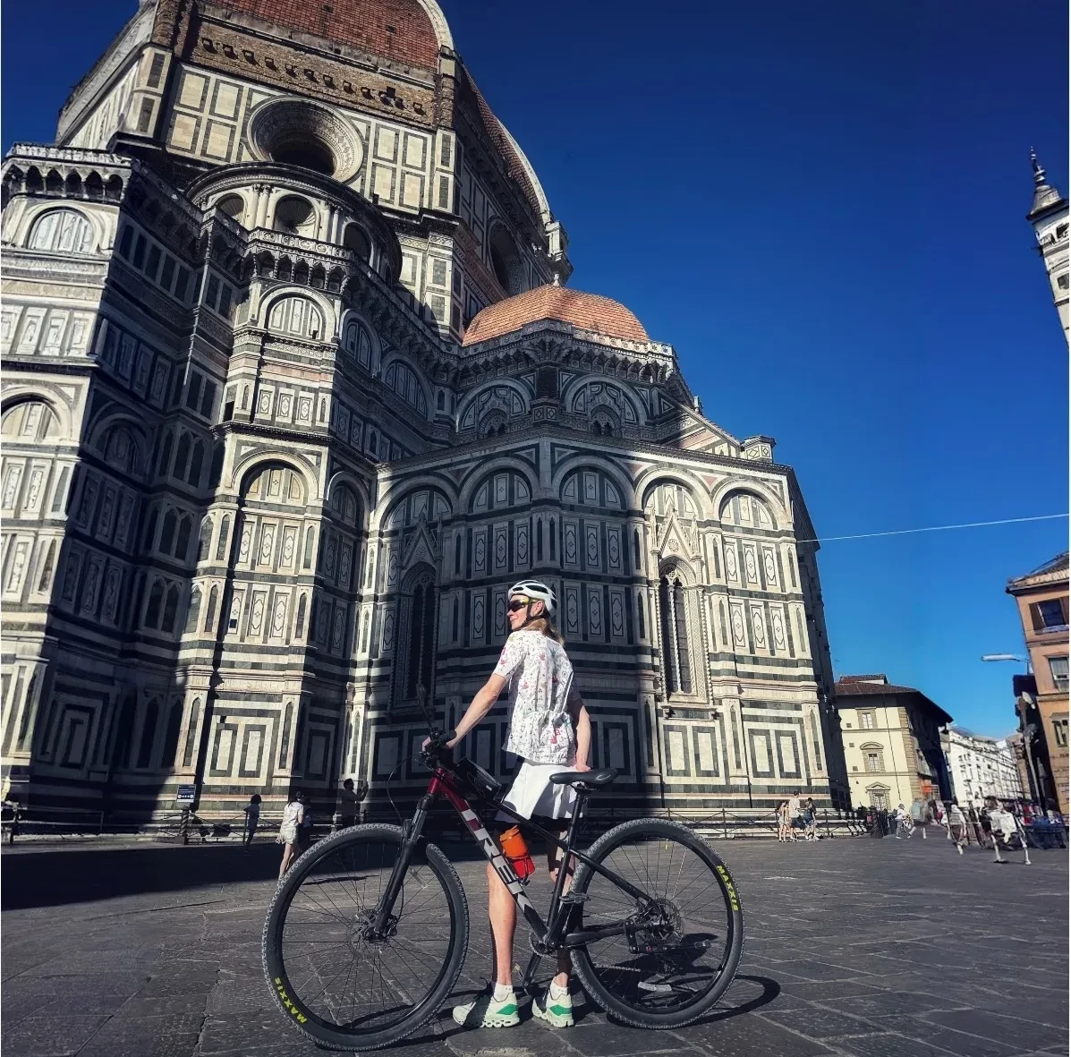 Так, Ходченкова опубликовала ролик, в котором идёт по лугу в длинном платье с разрезом до бедра, сопроводив его эмодзи в виде следов кошачьих лап. На фото она также показала окрестности и моменты своей велопрогулки.