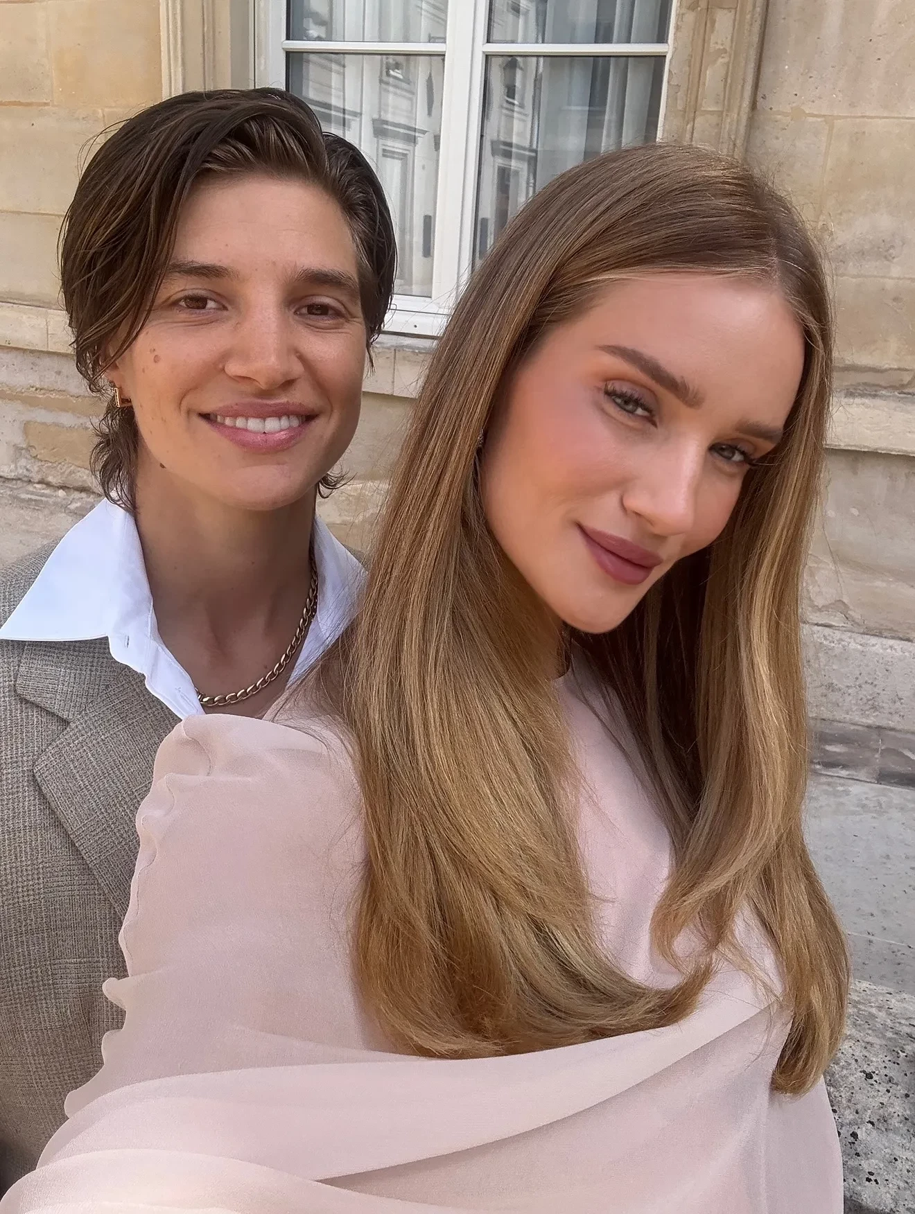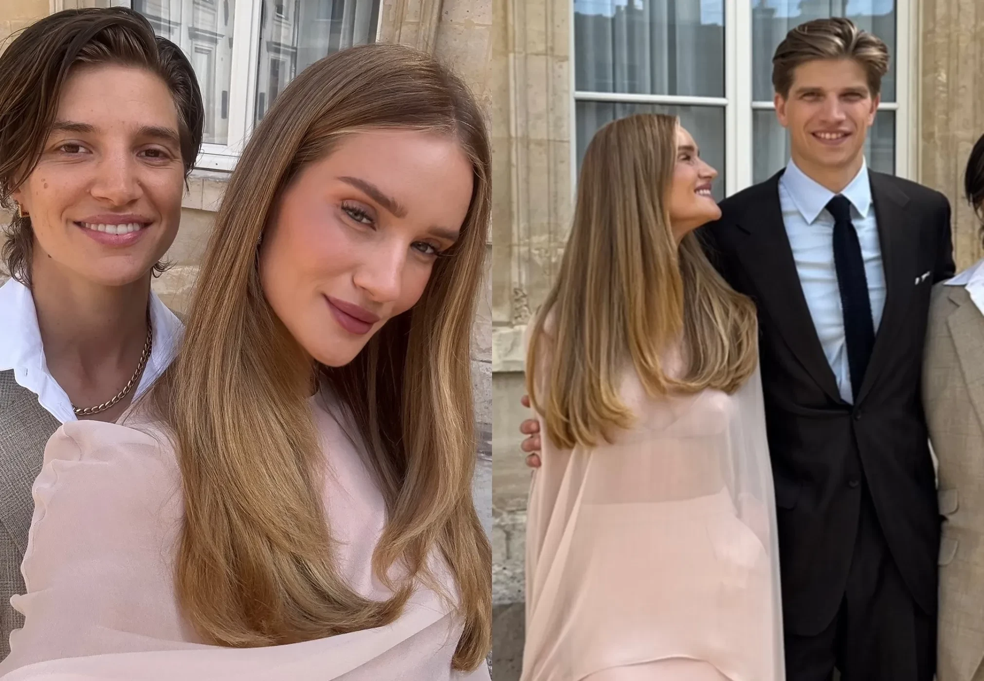 Для церемонии Рози выбрала длинное пудрово-розовое платье с накидкой. Изабелла была одета в белое платье с рюшами и обувь в тон. "Поздравляю эту великолепную пару. Я очень горжусь вами обоими. Желаю вам любви на всю жизнь", — написала 38-летняя модель, обращаясь к новобрачным.