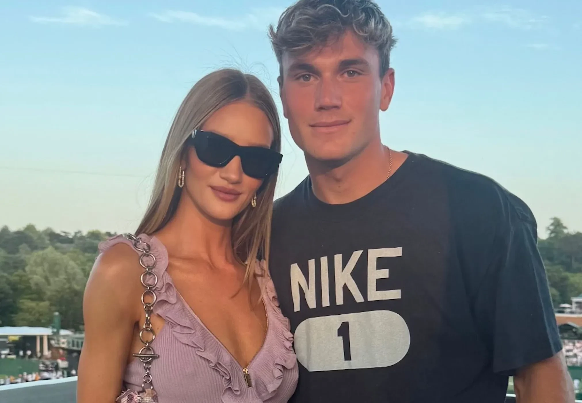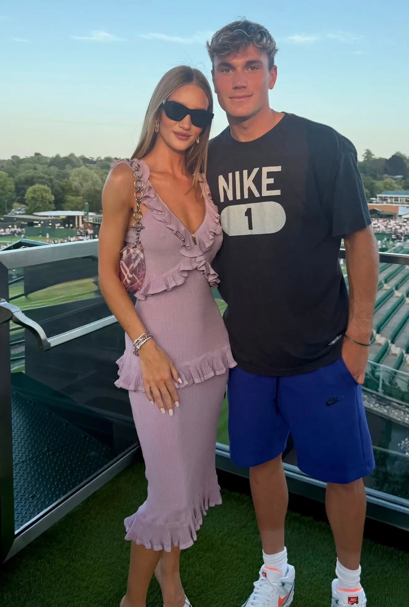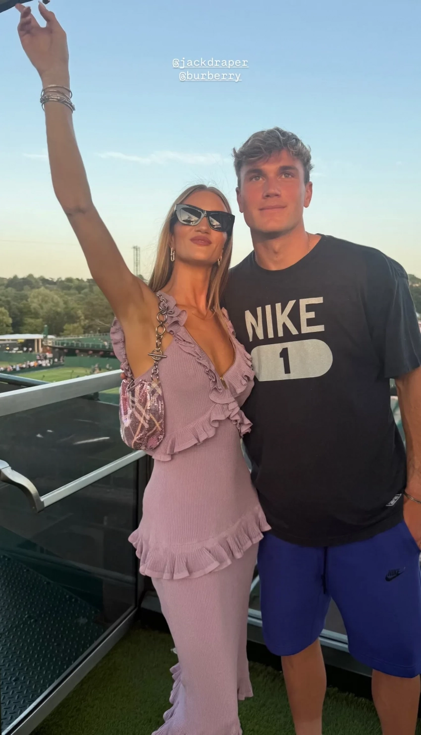 Рози пришла на турнир в тотал-луке Burberry в лиловых оттенках и дополнила образ тёмными солнцезащитными очками. Звезда "Трансформеров" наблюдала за игрой с ВИП-трибуны, а после встретилась с 23-летним теннисистом Джеком Дрейпером.