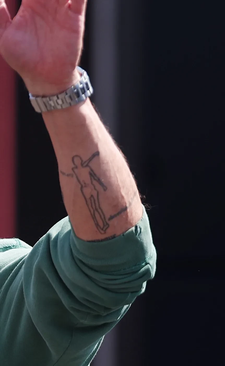 Так, в трейлере "Формулы" Питт появляется с обнажённым торсом, демонстрируя внушительную коллекцию татуировок. Его тело украшено знаками, буквами и разнообразными изображениями, среди которых скелет кентавра, торнадо и японские карпы. Особое внимание привлекает крупная татуировка на животе: её начало представляет собой букву "А", отсылающую к слову "альфа", тогда как в другом месте видна надпись "омега" — вместе эти элементы символизируют начало и конец. На спине актёра набита цитата из песни Боба Дилана When the Deal Goes Down: "Мы живём и умираем, не зная почему. Но я буду с тобой, когда сделка сорвётся". Однако наибольший интерес вызывает надпись на нижней части живота — это дата рождения Анджелины Джоли, его бывшей жены, выполненная кхмерскими символами.