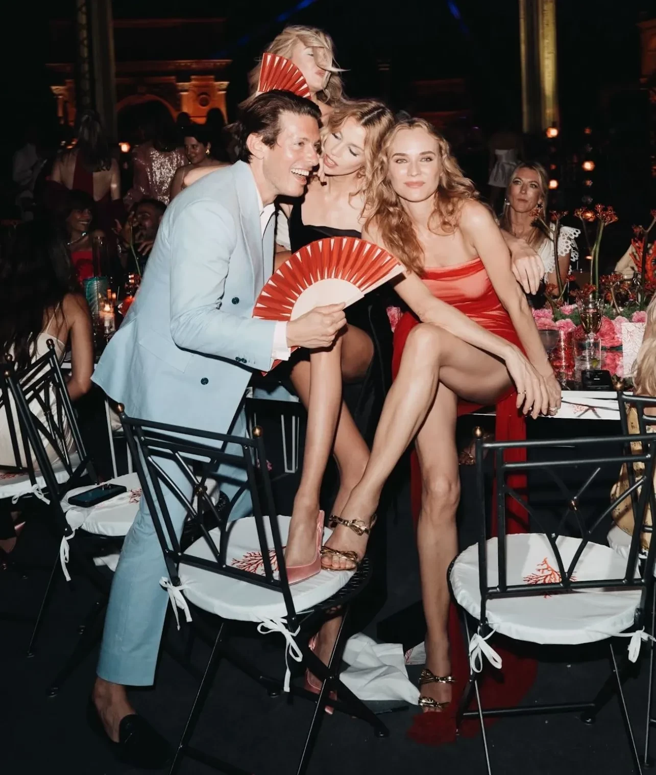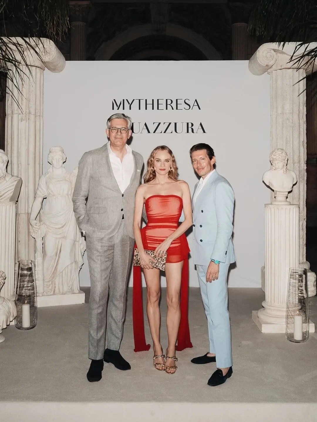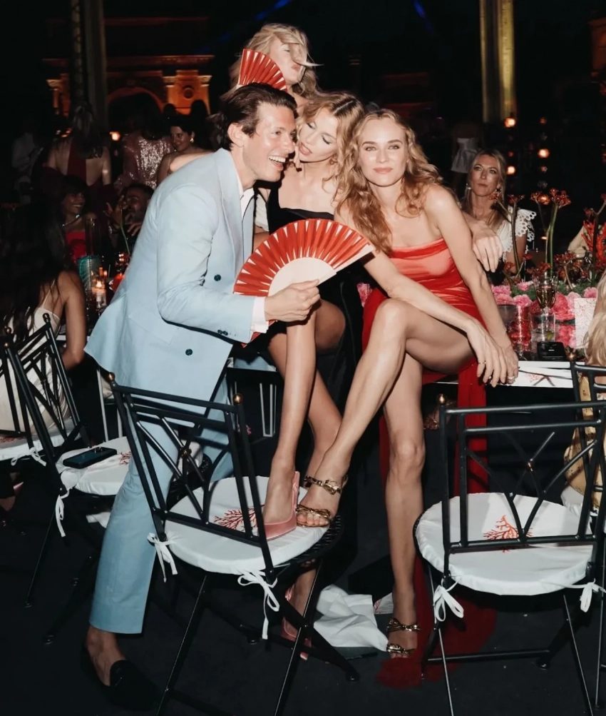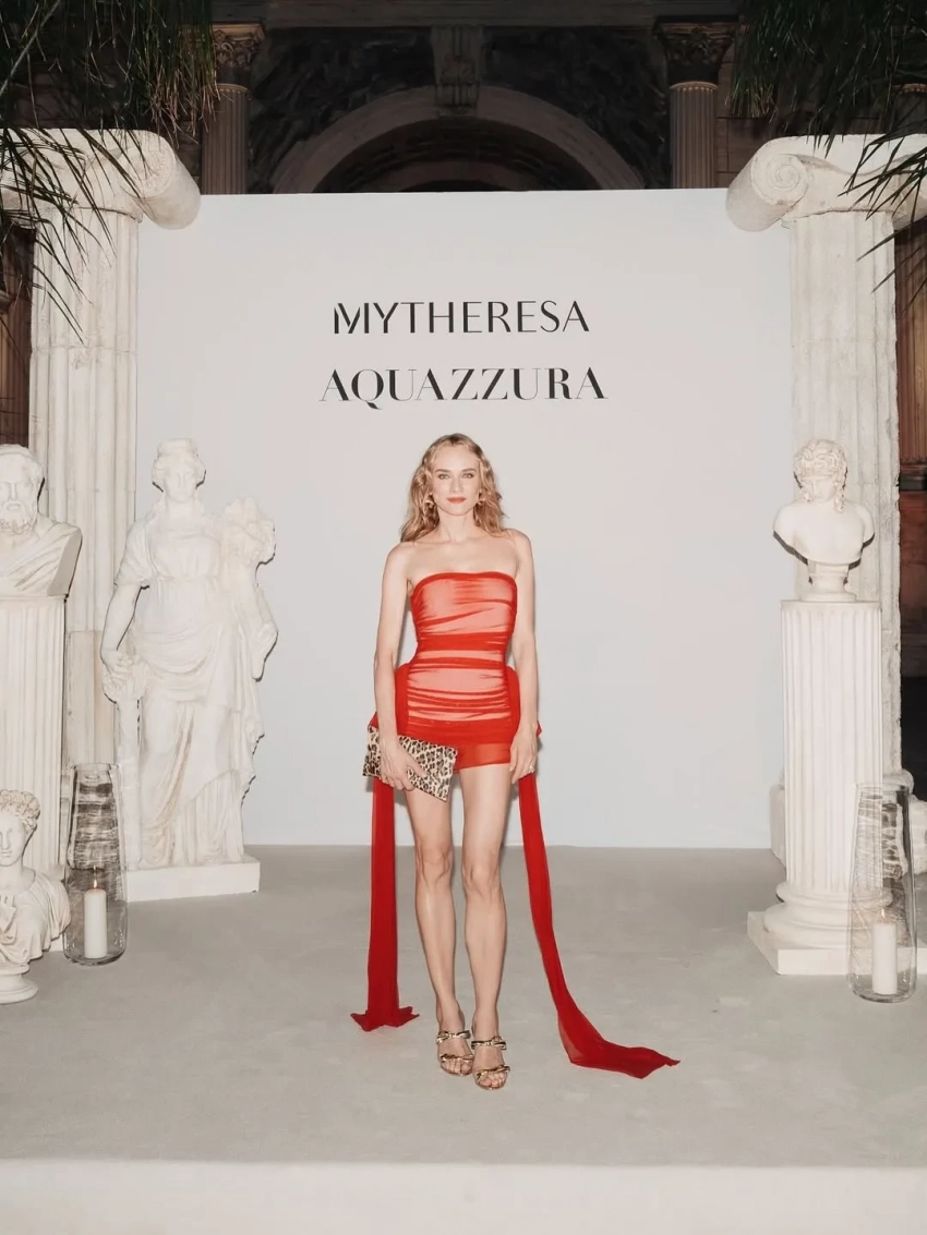 48-летняя Диана Крюгер посетила вечеринку в Риме в честь коллаборации бренда Aquazzura с онлайн-магазином Mytheresa. Актриса позировала фотографам в красном прозрачном мини-платье в компании 35-летней модели Стеллы Максвелл и основателя Aquazzura Эдгардо Озорио.