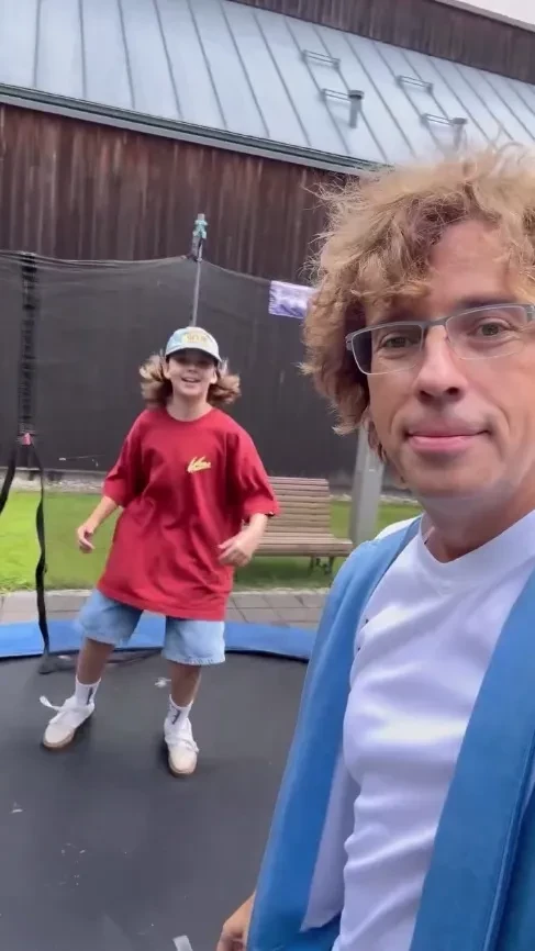 В одном из роликов, который сняла 76-летняя Пугачёва, 49-летний шоумен готовит завтрак с Лизой. В другом видео он готовится прыгать на батуте с Гарри, попутно поправляя его английский.