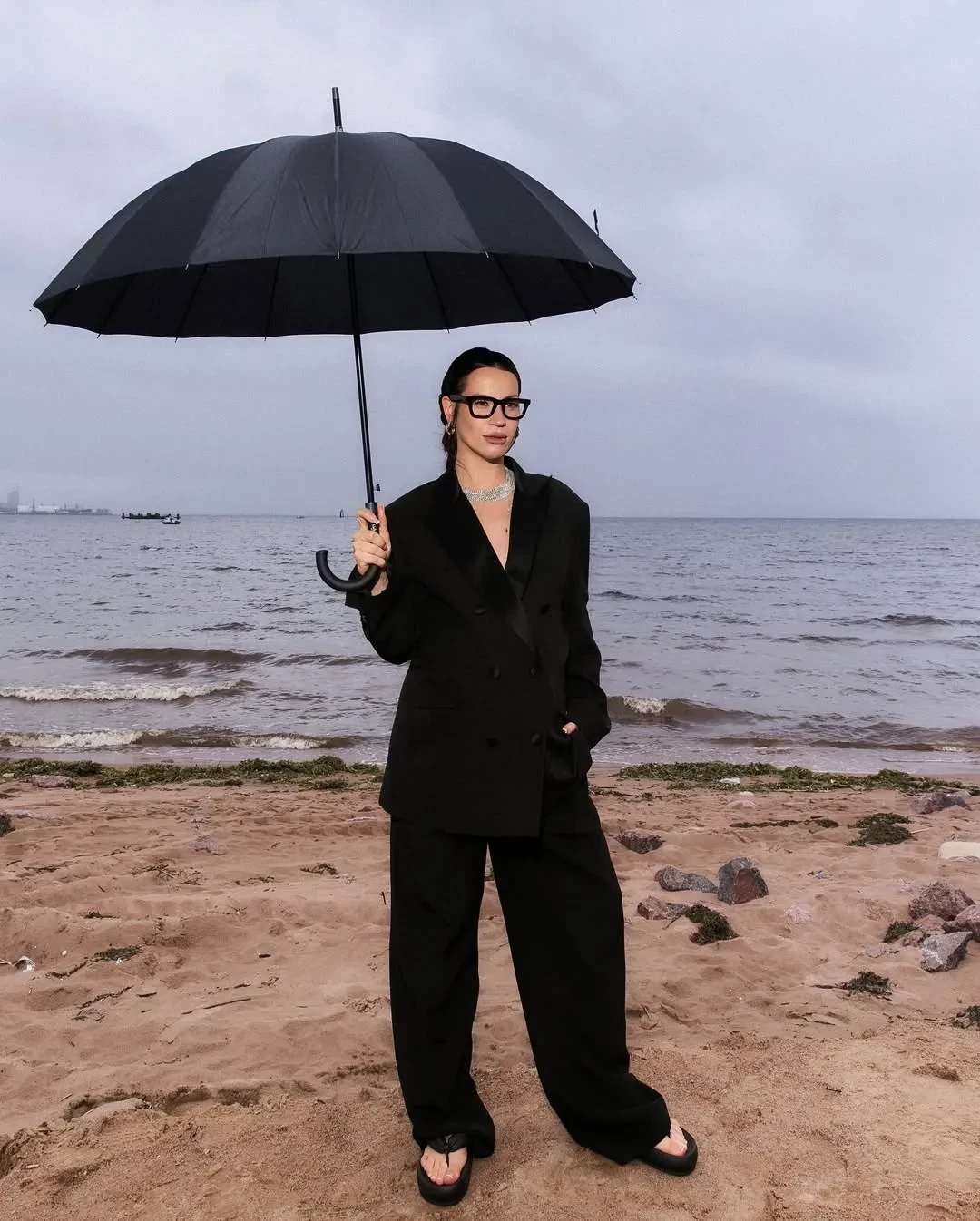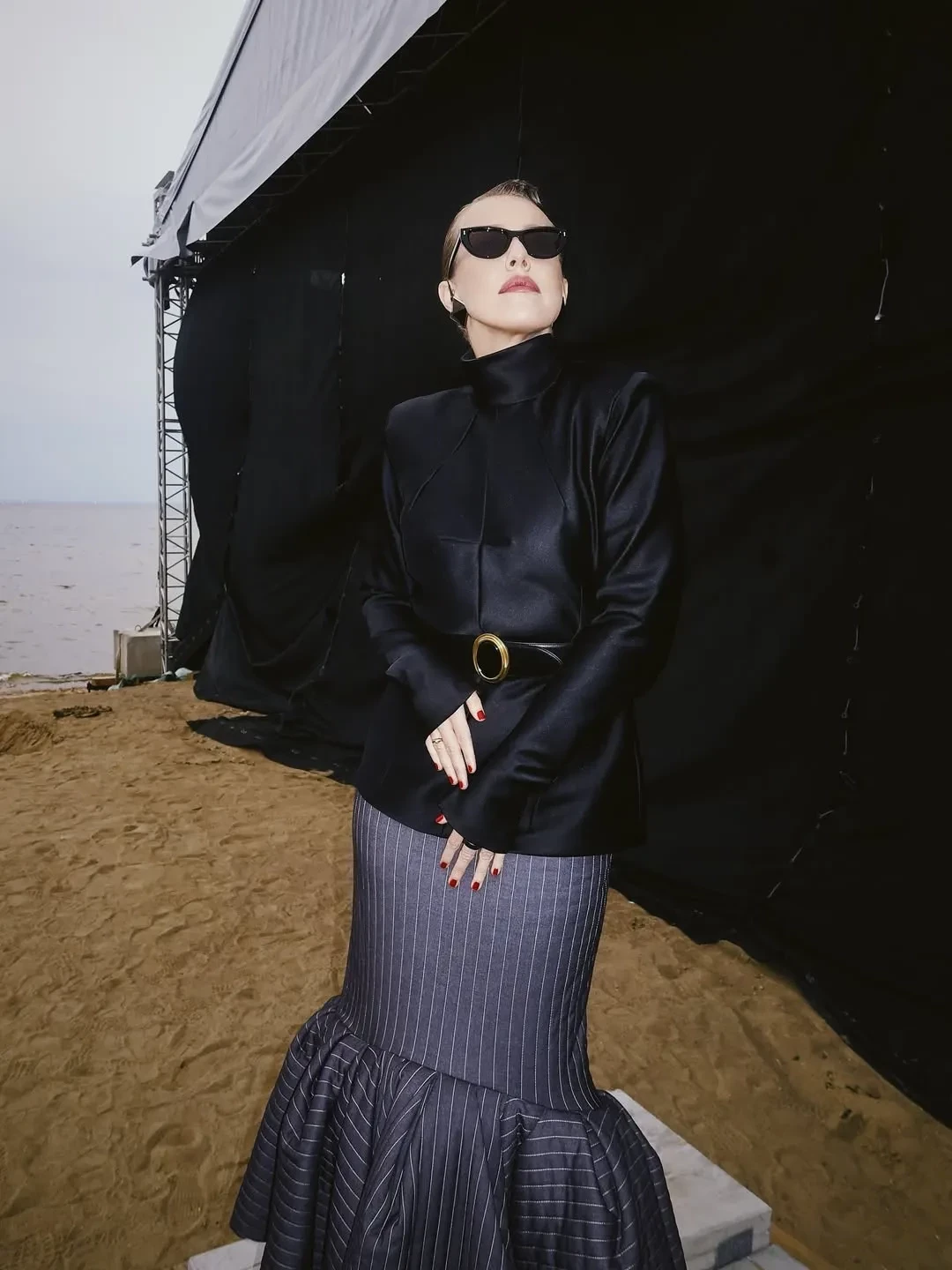 Ксения Собчак и Ида ГаличЗа два дня фестиваля 35-летняя Ида примерила несколько луков от российских дизайнеров. Она носила чёрный брючный костюм Lesyanebo, боди с полупрозрачной юбкой Autentiments, металлический жакет Viva Vox и белый костюм "1811", дополнив образ украшениями Schiaparelli. На этот раз над образами Галич работал не её постоянный стилист Олег Горчанин, а Эльмира Тулебаева.