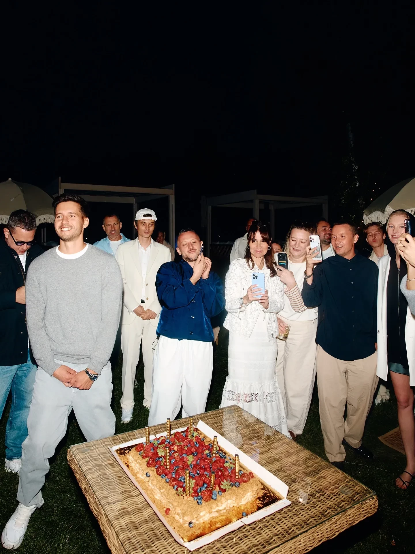 Дмитрий и Кристина ВикулиныКристина и Дмитрий Викулины, Пётр Дранга и Агата МуцениецеДмитрий Викулин, Ксения Ермоленко и Павел ТабаковМаша Фёдорова и Мария АндрееваАндрей Артёмов и Дмитрий ВикулинЕкатерина Мцитуридзе и Дмитрий ВикулинДмитрий Викулин и Светлана КузнецоваДмитрий Викулин и Игорь ГаранинДмитрий Викулин, Юлия Харитонова и Асланбек ДжалиевВладимир и Анита Аверьяновы, Дмитрий ВикулинКатя ДобряковаЕлена ОкутинаТоржество проходило под открытым небом у воды, праздничный стол ломился от угощений и напитков на любой вкус, а в какой-то момент сам именинник эффектно занырнул в бассейн. Вместо классического торта подали трендовый — украшенный ягодами, свечи на котором Дмитрий задувал вместе с женой Кристиной.