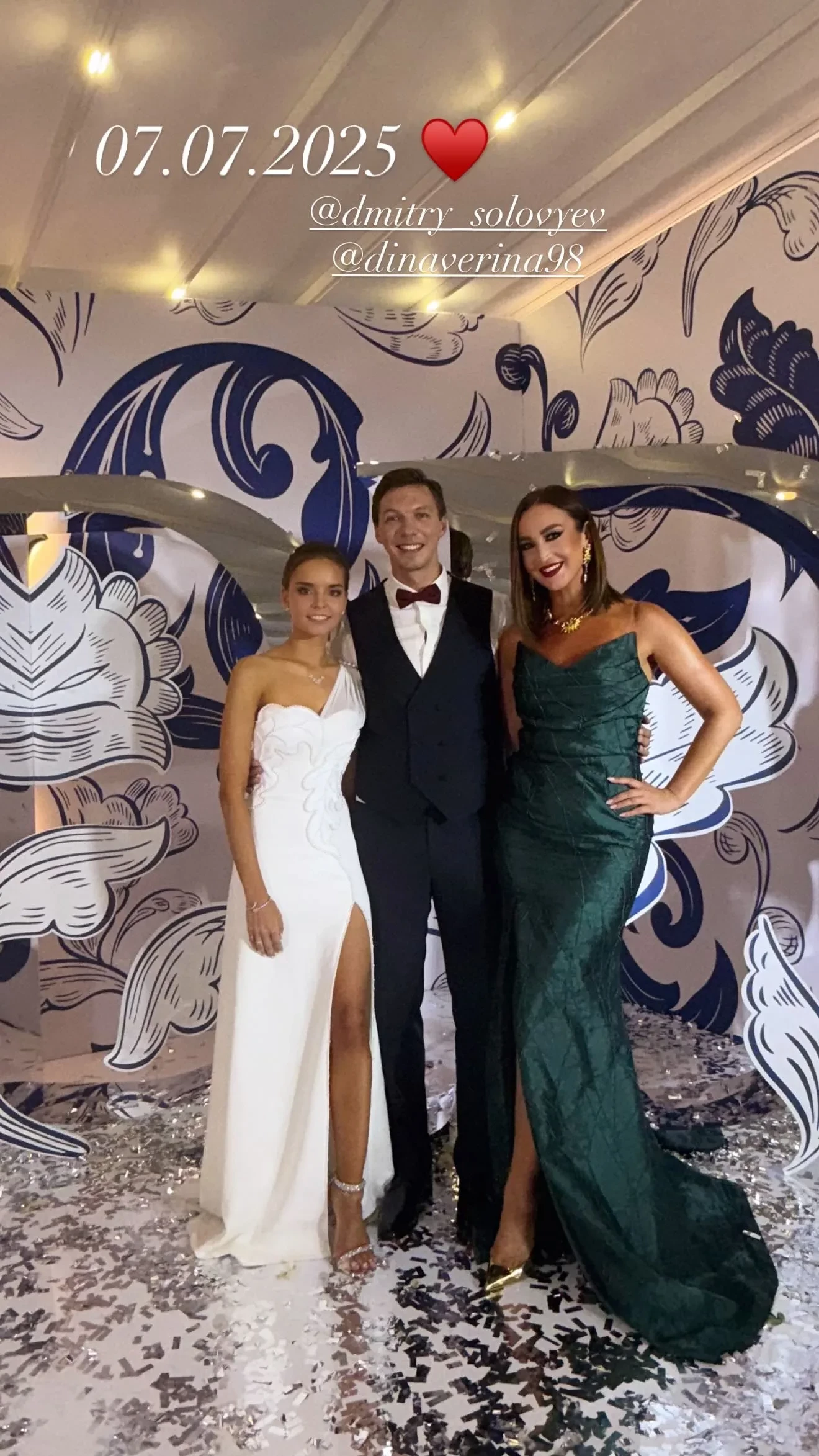 В Москве состоялась свадьба серебряного призёра Олимпийских игр, гимнастки Дины Авериной, и олимпийского чемпиона в танцах на льду Дмитрия Соловьёва. Гостями вечера стали бывшая наставница спортсменки Ирина Винер, Татьяна Навка, Лиза Арзамасова и Илья Авербух.
