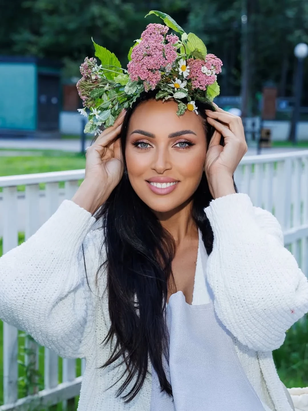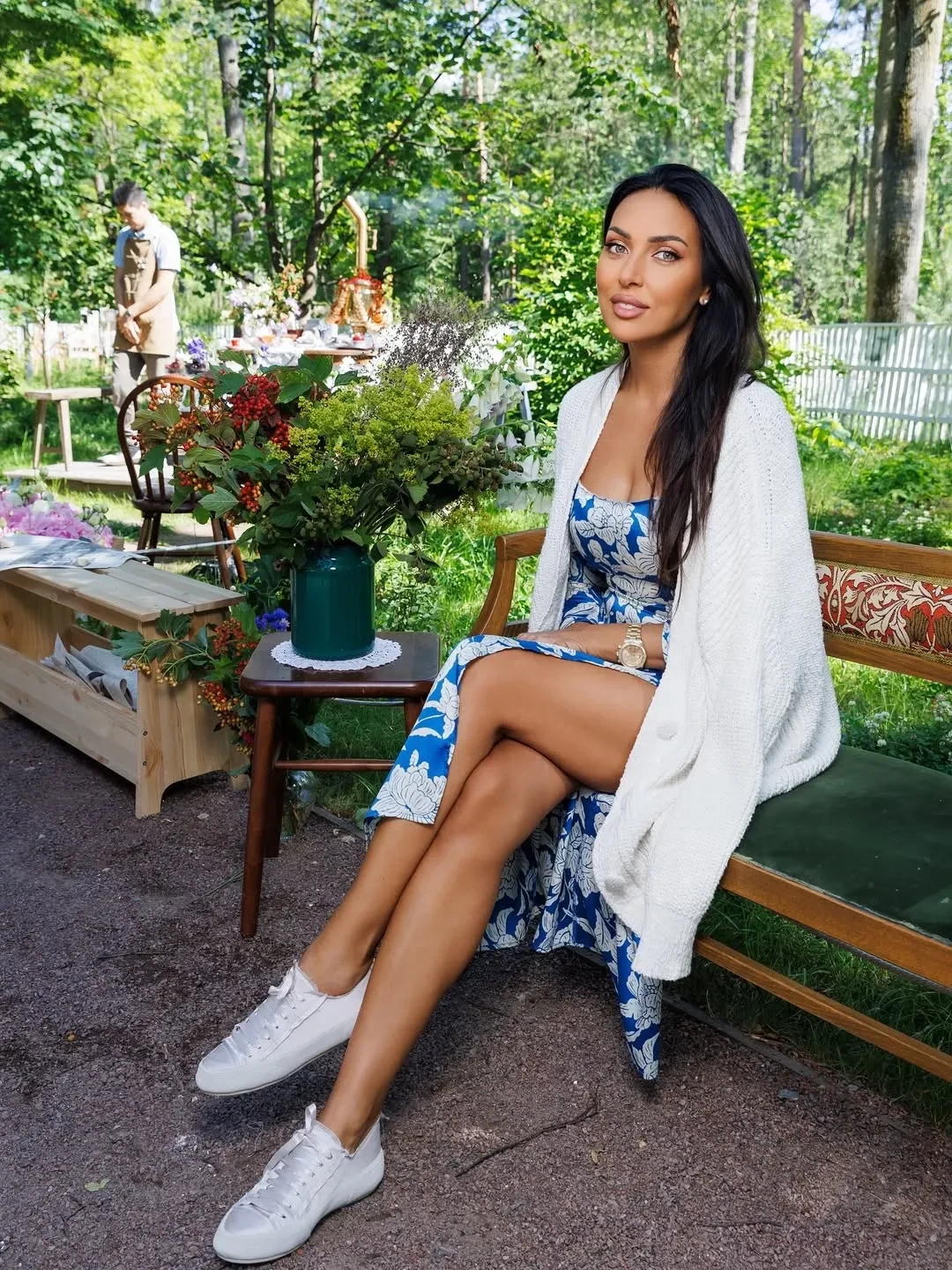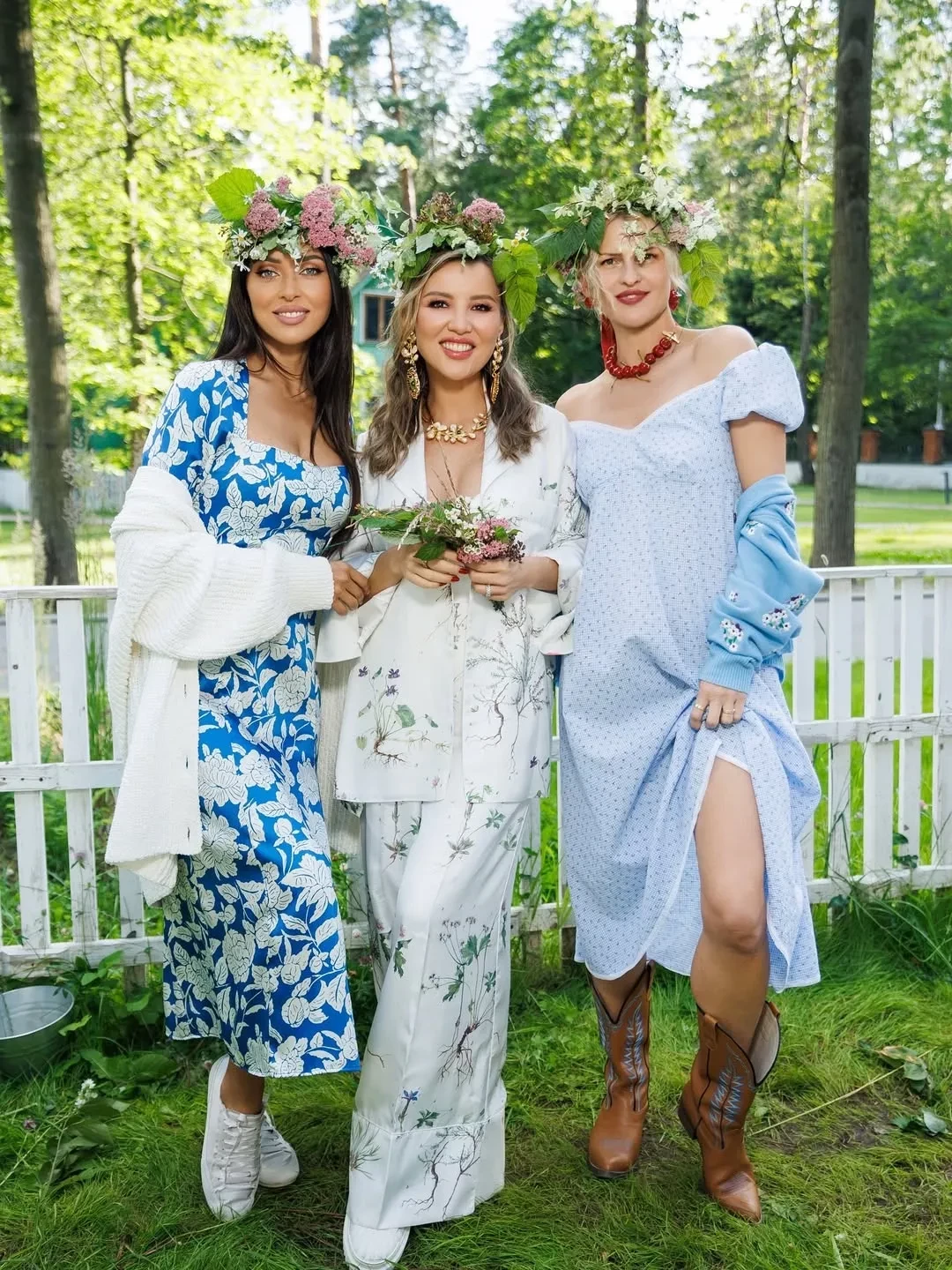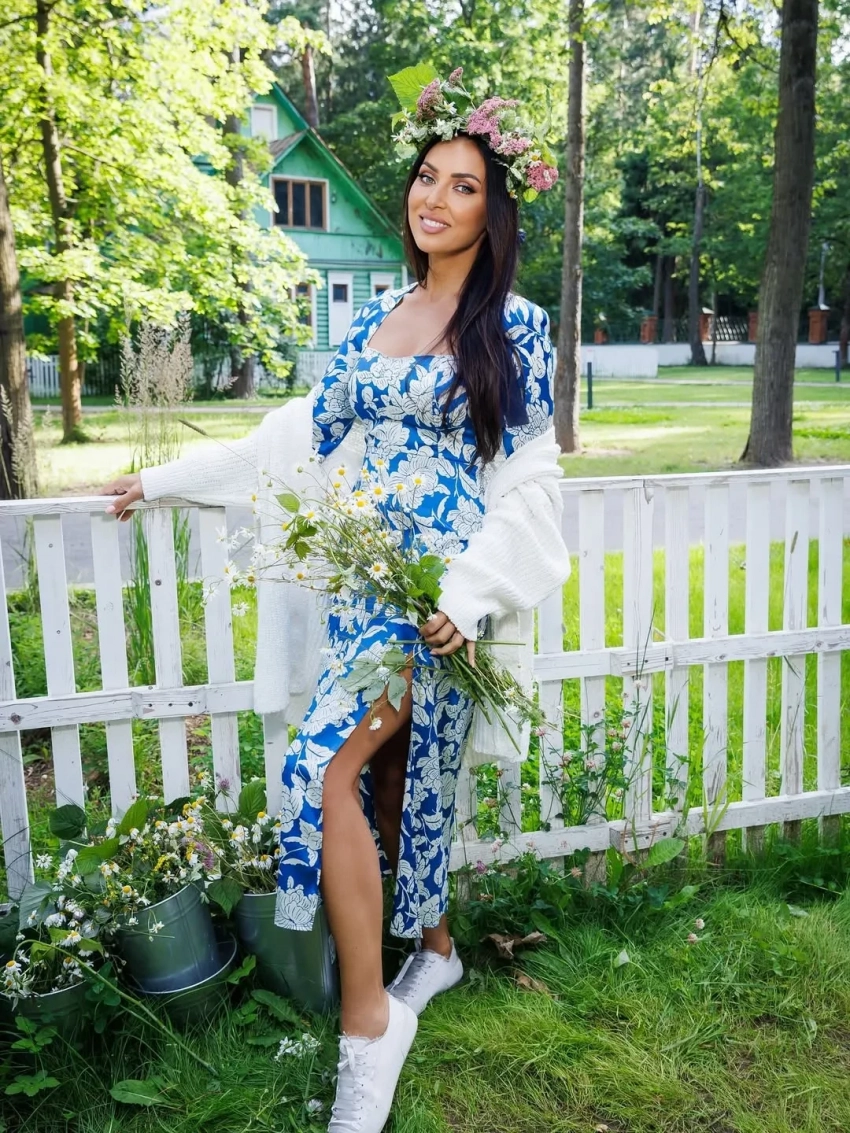 Алсу пришла на праздник в платье в бело-синих оттенках с разрезом и белом кардигане. Гости развлекались в лучших традициях загородных посиделок: пили чай из самовара и плели венки из полевых цветов. "Это был прекрасный день! Спасибо дорогая Аида за эту сказку и море впечатлений!", — написала певица в соцсетях.