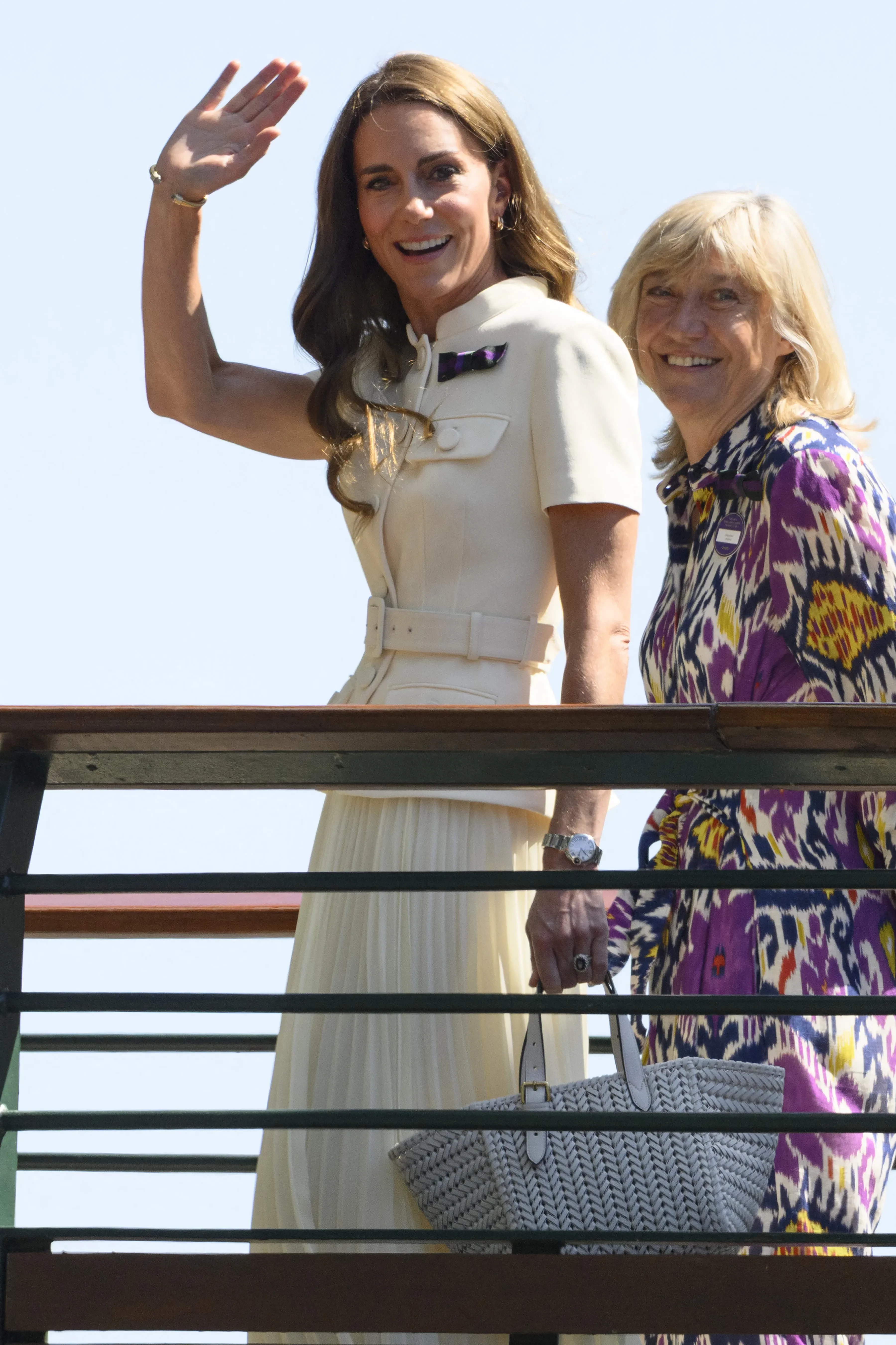 Кейт МиддлтонДля мероприятия принцесса выбрала структурный белый топ с короткими рукавами, схваченный поясом на талии, а также плиссированную юбку миди того же цвета. Её образ дополняли сумка Anya Hindmarch стоимостью 920 фунтов стерлингов (около 97 тысяч рублей) и фиолетово-зелёная брошь в виде банта, означающая, что Кейт является патроном Всеанглийского клуба лаун-тенниса и крокета. Эта должность перешла к ней от Елизаветы II в 2016 году.