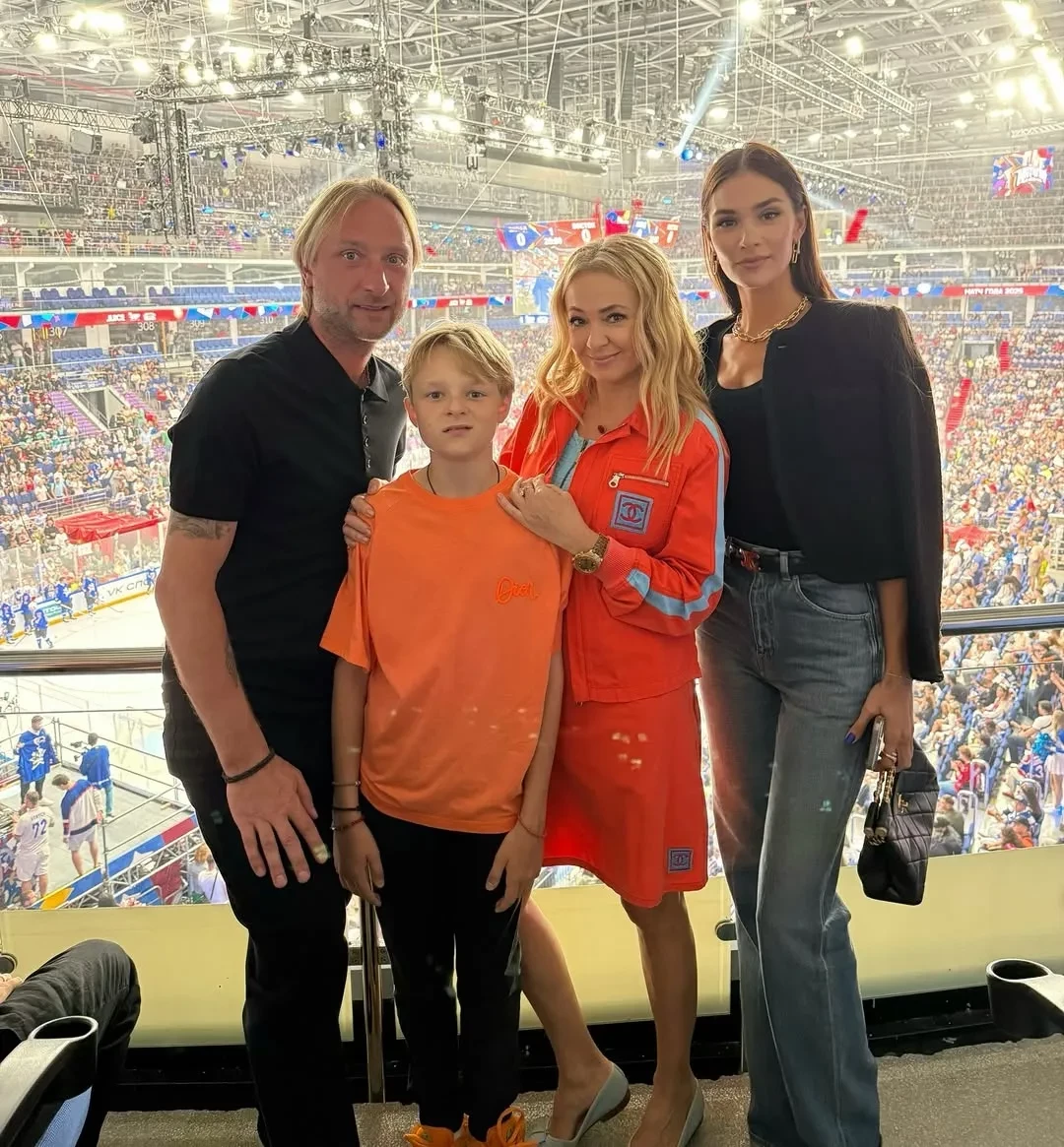 50-летняя Яна Рудковская вместе с мужем Евгением Плющенко, который недавно показал результаты блефаропластики, и старшим сыном Александром (Гном Гномыч) посетили хоккейный матч команд НХЛ против КХЛ. Среди приглашённых также были 71-летняя Любовь Успенская с дочерью Татьяной Плаксиной и солист группы "Иванушки International" Кирилл Андреев.