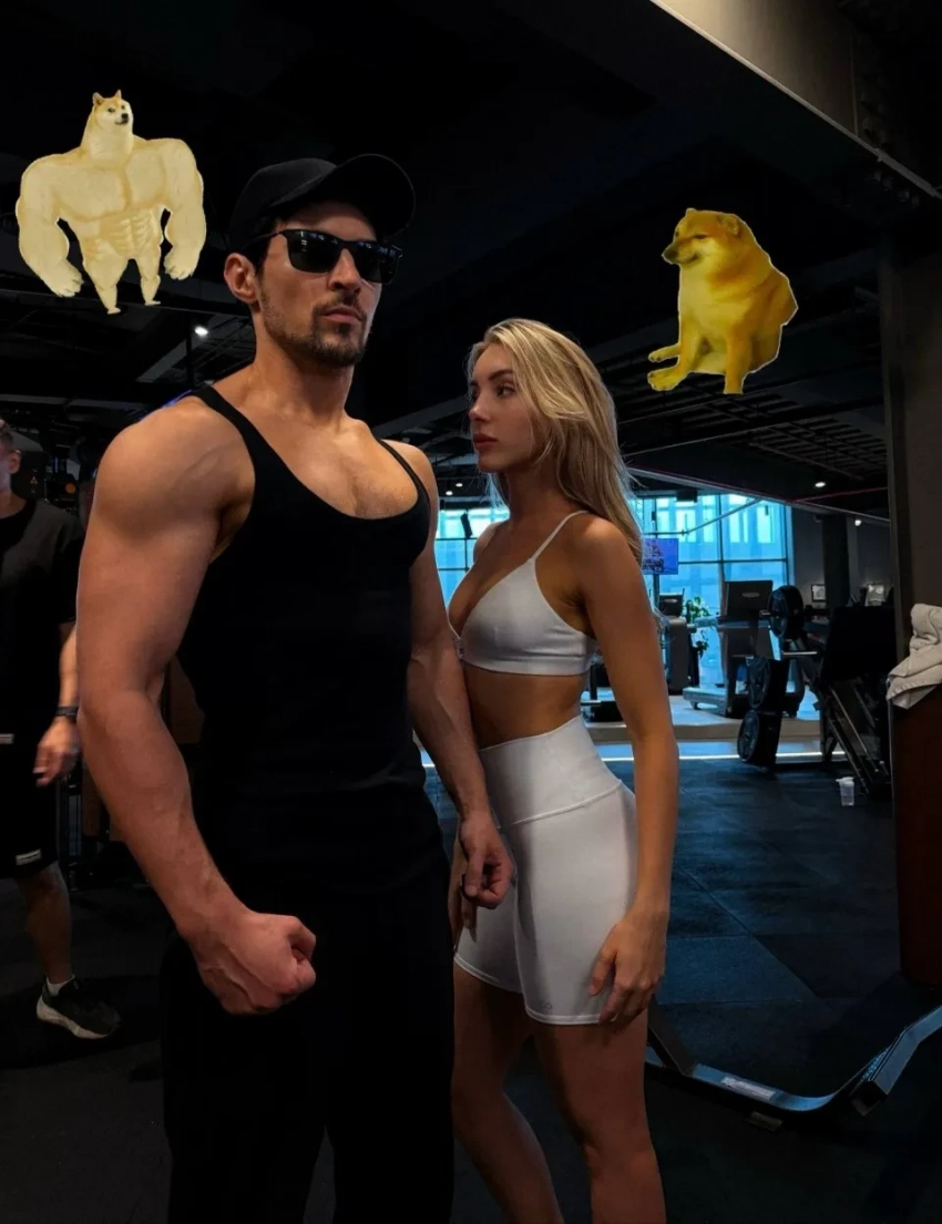 При этом девушка сравнила себя и своего бойфренда с собаками из популярных мемов, а также оставила к снимку лаконичную подпись: "Идеальная пара".