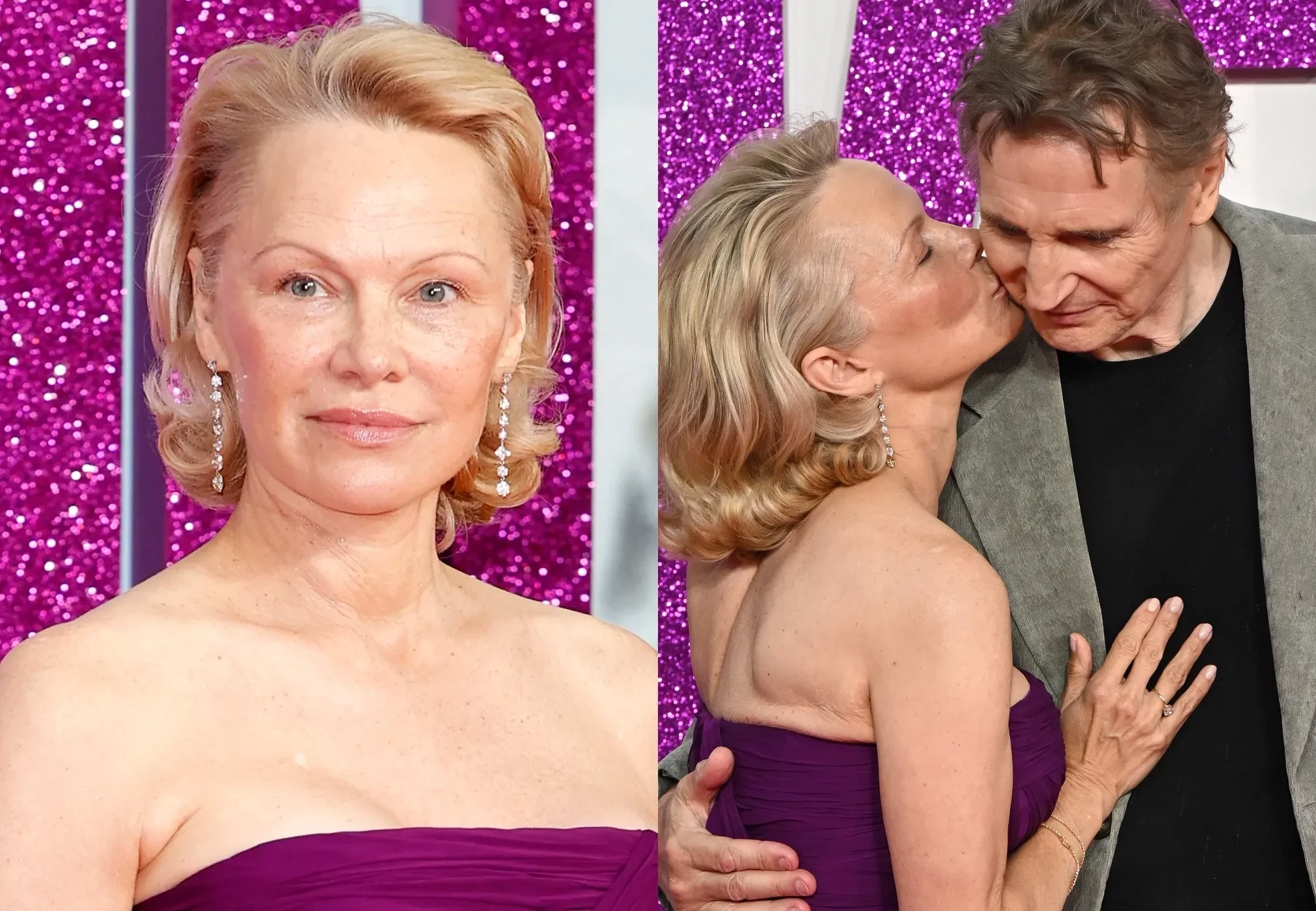 Памела Андерсон, которая пару лет назад отказалась от макияжа, появилась на премьере в фиолетовом платье Rodarte, а Лиам позировал рядом в сером костюме. Актёры не скрывали чувств: они с улыбкой обнимали друг друга, держались за руки, а в какой-то момент Памела даже поцеловала коллегу.