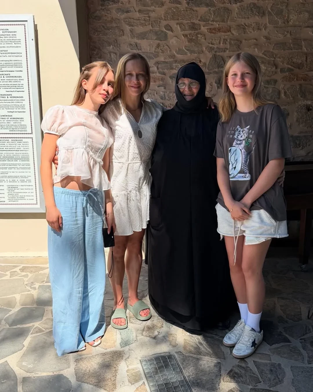 Звёздная семья посетила местный монастырь, где встретилась с монахиней, а Юлия приобрела себе икону. Также актриса показала несколько фотографий с пляжа и прогулок по городу с дочерьми.