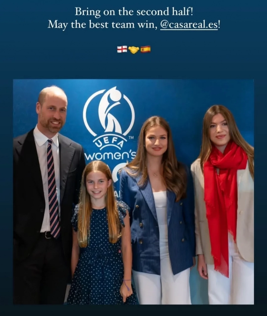 Принц Уильям с дочерью Шарлоттой, принцесса Испании Леонор и инфанта София посетили женский финал Евро-2025