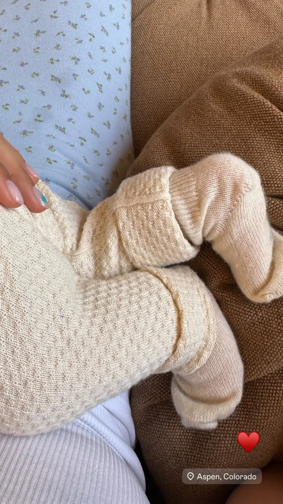 На снимке можно увидеть Марка, лежащего на коленях у Надежды. К фотографии Надежда добавила эмодзи сердца.