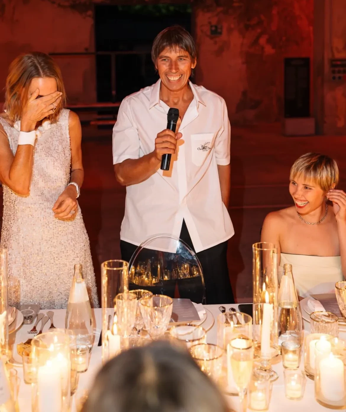 Бывший генеральный директор "Белой дачи" Владимир Цыганов стал лауреатом итальянской поэтической премии Кардуччи. Бизнесмену вручили награду за лучшие иностранные стихи, переведённые на итальянский язык. В честь этого супруга Цыганова Оксана Бондаренко организовала гала-ужин, на котором собрались друзья и близкие пары, в том числе их дочери Алина и Миа.