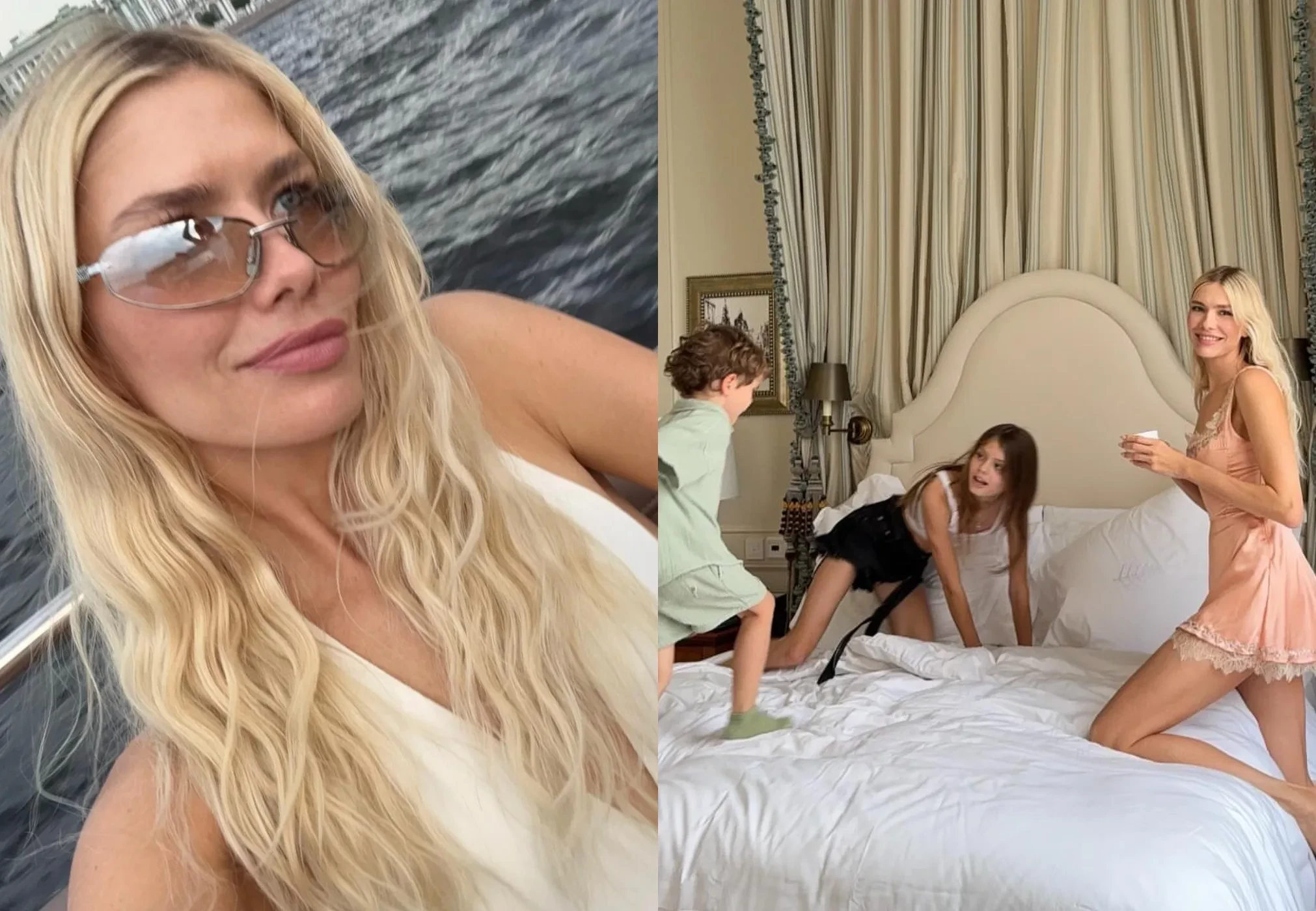 На снимках модель позирует в отеле, как одна, так и с детьми. Также Перминова добавила несколько кадров с прогулки на катере по Неве. "Питер правда ассоциируется с летом в нашей семье. Удивительно, как самый дождливый город всегда встречает нас солнцем. Гуляли, спали до обеда, ели пиццу по ночам. На каникулах мы отрываемся", — подписала 38-летняя Перминова фотографии.