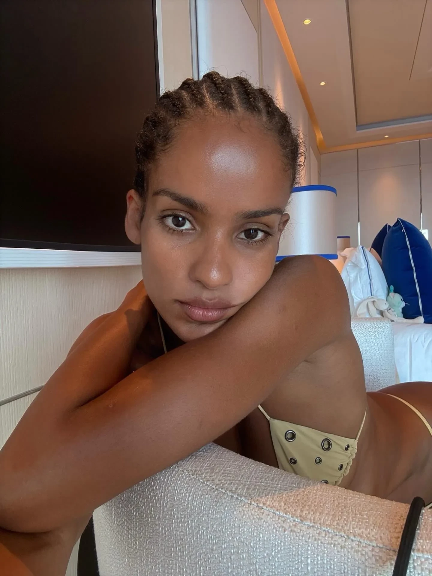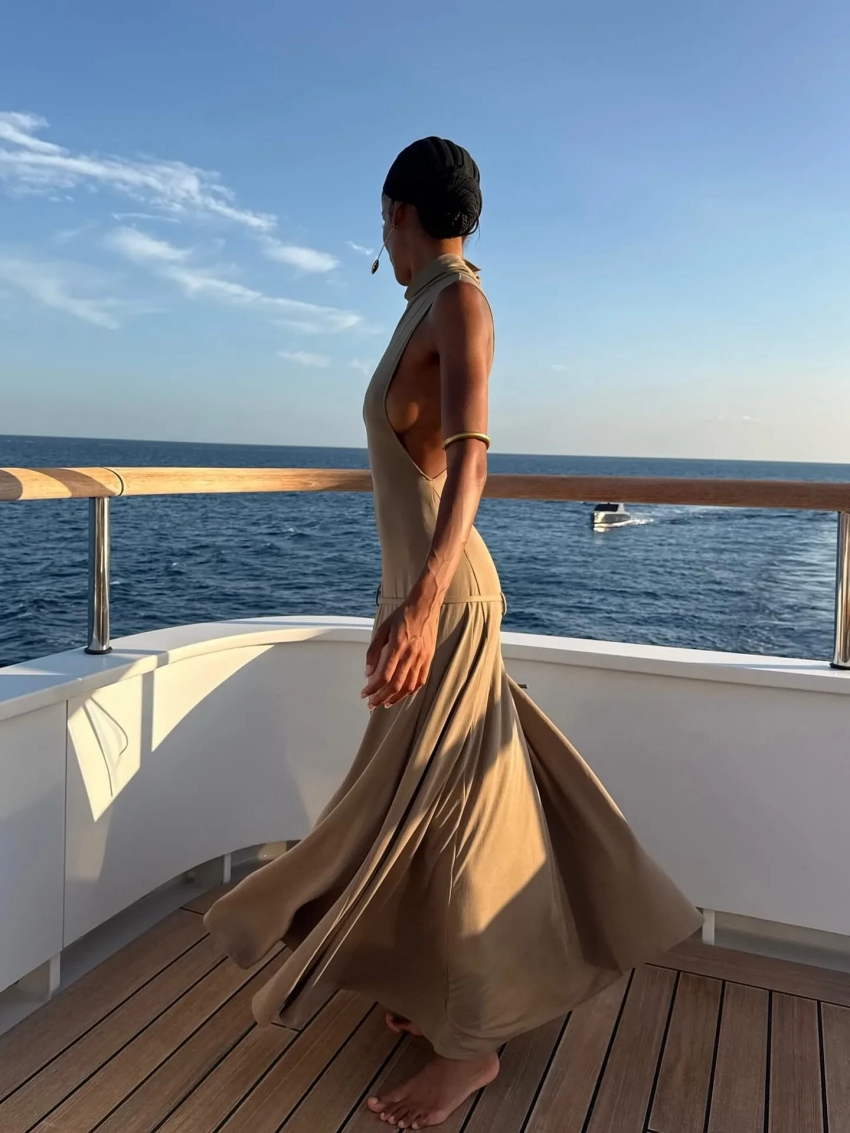 Девушка Венсана Касселя отдыхает в бикини на яхте в Италии