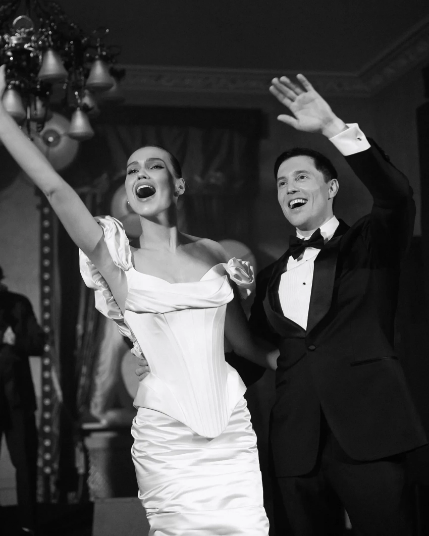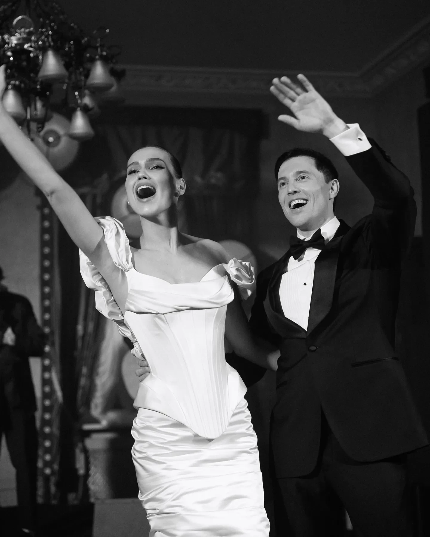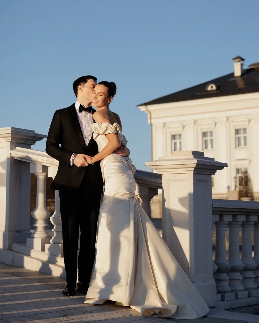 Предложение Ксении сделали ещё в прошлом году во время отдыха в Париже. От своего возлюбленного Ильи она получила кольцо бренда Graff стоимостью около 4 млн рублей. В марте пара устроила свадьбу: невеста за вечер сменила два наряда. Первым было платье от калифорнийского модельера Кристи Бэрд. По оценкам СМИ, она заплатила за него от 300 до 500 тысяч рублей. К вечеру невеста сменила элегантное платье на короткое коктейльное.