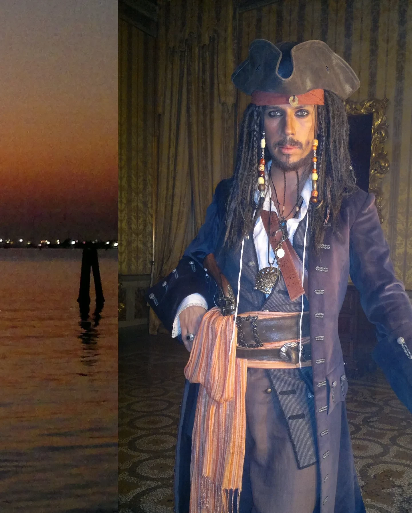 На снимках Галкин* запечатлён в нескольких образах: в меховой шапке, в средневековой одежде, а также в костюме капитана Джека Воробья. Он также добавил фото со своей женой Аллой Пугачёвой в готическом образе и её отдельный снимок в чёрном кожаном платье.