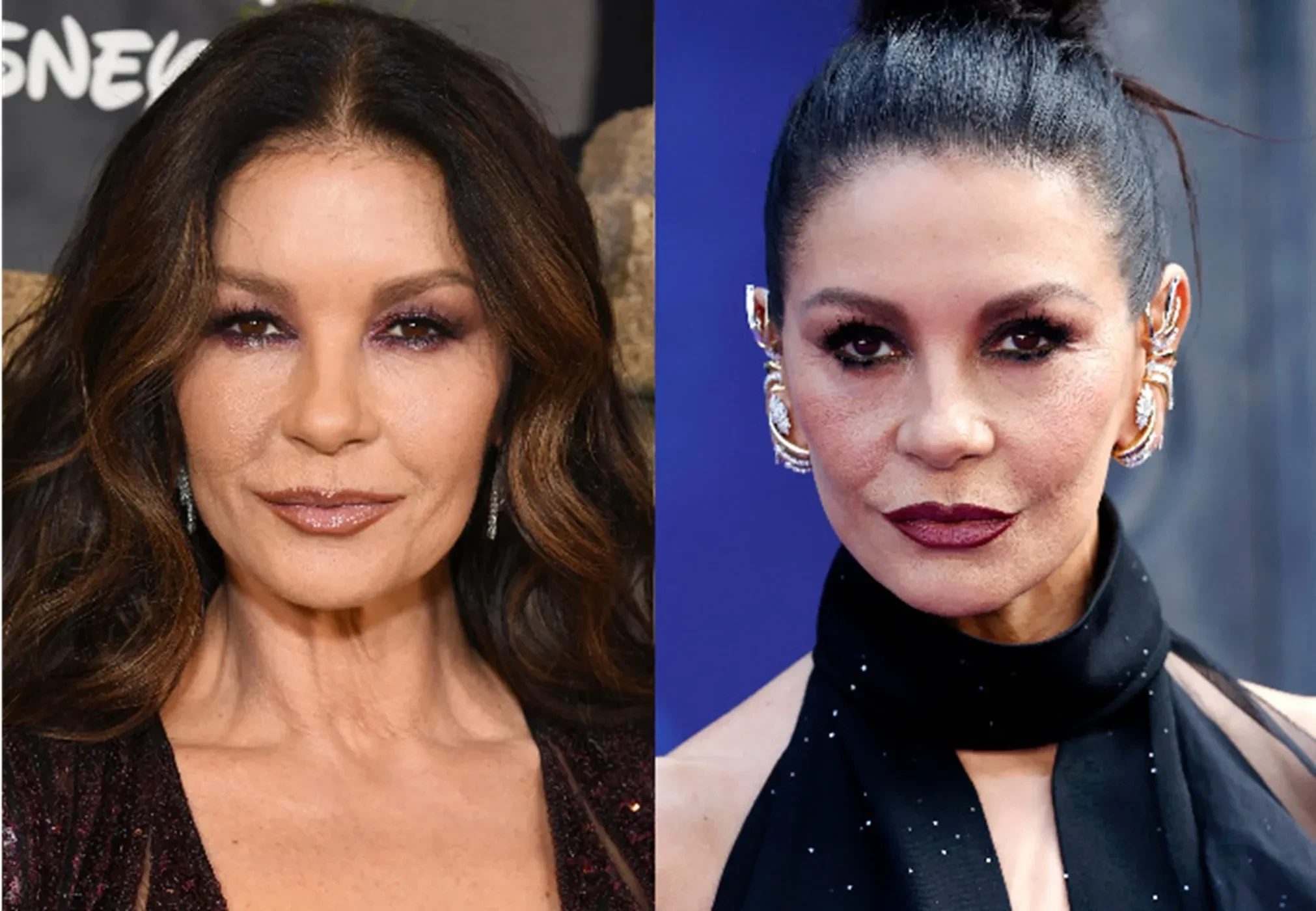 55-летнюю Кэтрин Зету-Джонс заподозрили в том, что она сделала себе пластическую операцию к съёмкам второго сезона сериала "Уэнсдей", где вновь вернулась к роли Мортиши Аддамс. В сети сравнили архивные и новые фото актрисы и пришли к выводу, что она пошла на глобальное преображение.