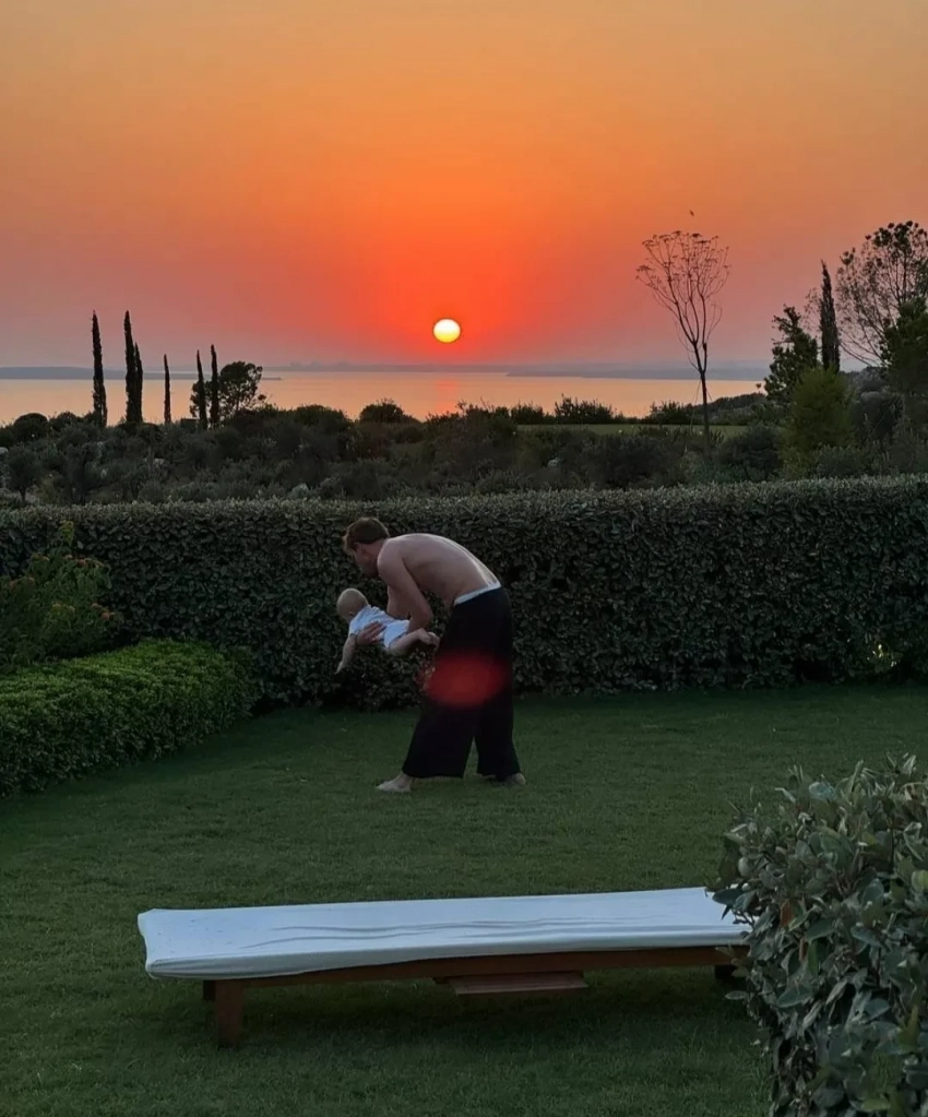 В подборку вошли кадры, на которых Александр играет с сыном Фёдором на фоне заката. "Моя любимая серия фото теперь", — написала Виктория.