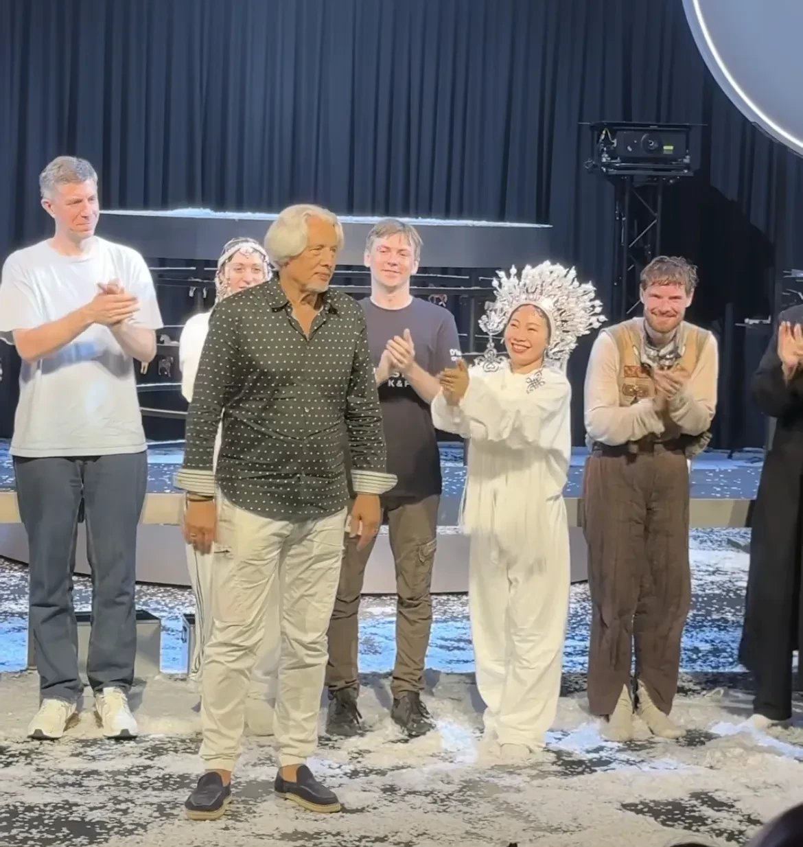 "Поздравляю всю команду Кирилла: блестящая работа Филиппа Авдеева в роли Перкуши, похудевшая и искрящаяся Варвара Шмыкова, любимая Ян Гэ, погружающая своим пением в транс. Какое счастье было вас всех обнять и увидеться!" — написала Собчак.