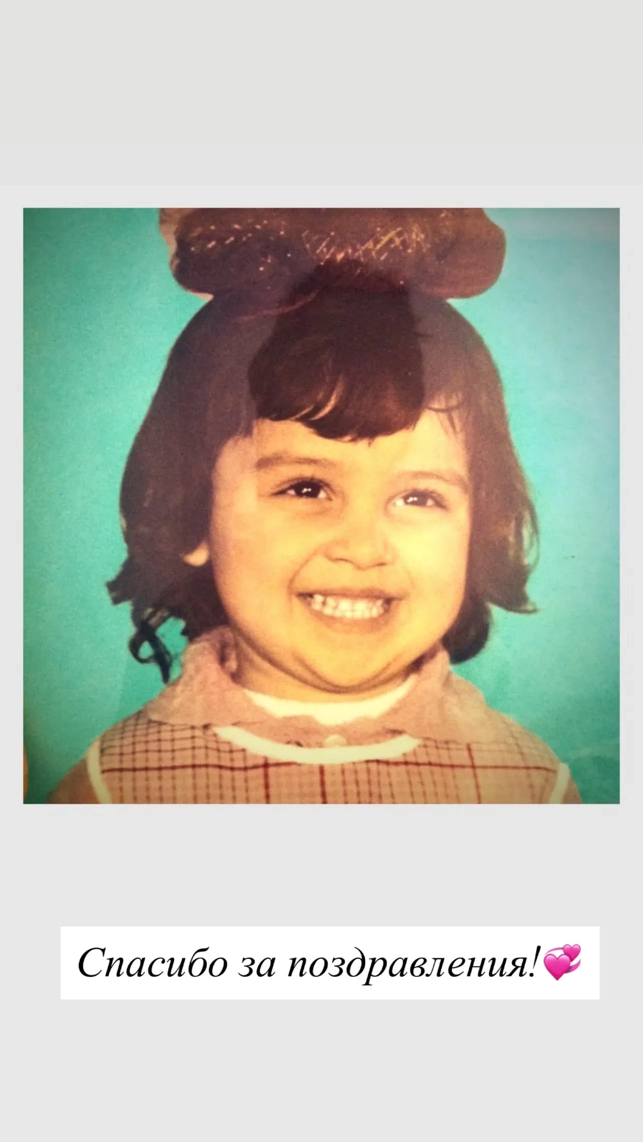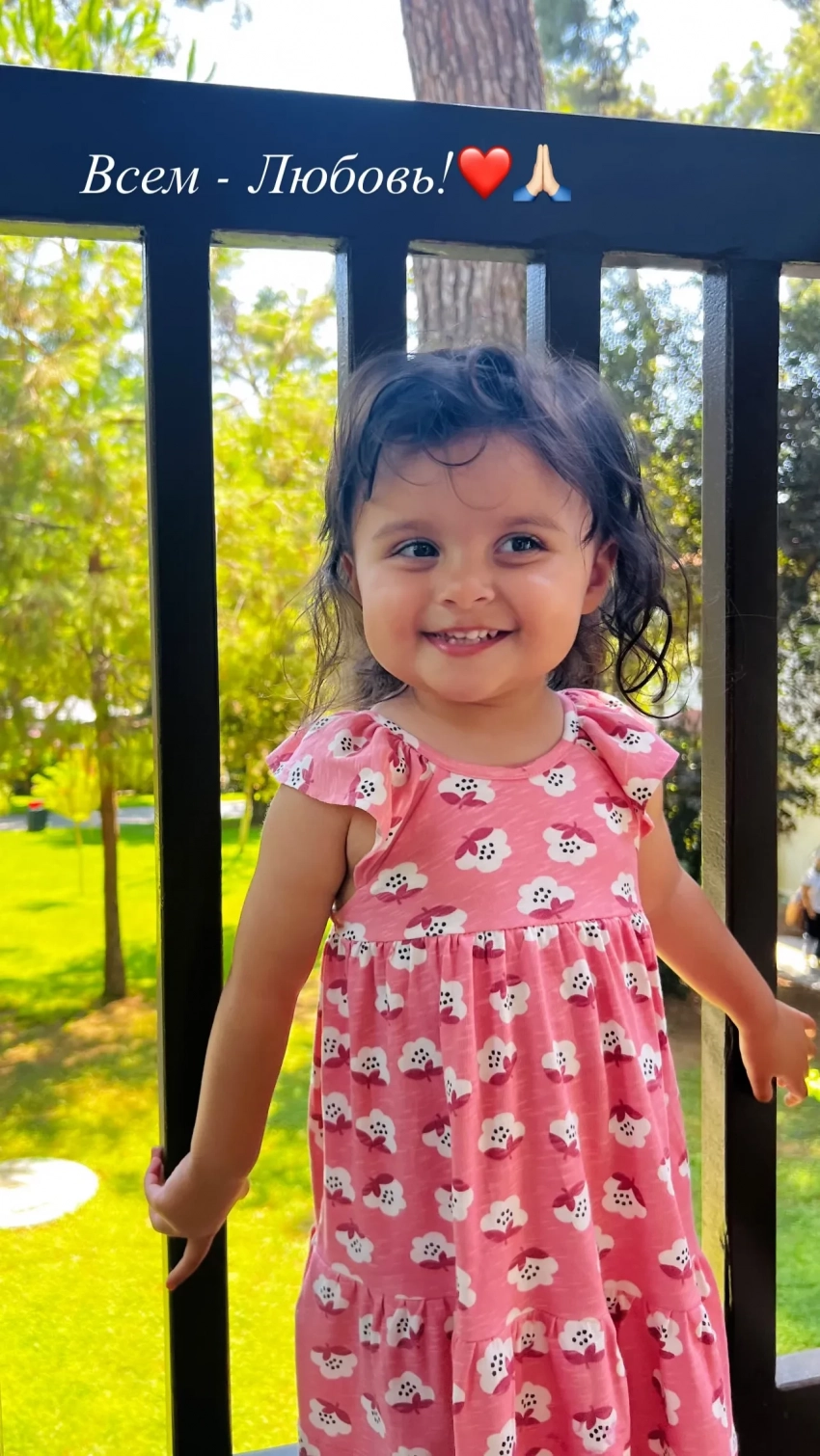 На архивном снимке запечатлена маленькая Равшана в платье и с бантом на голове. На другой фотографии запечатлена Самира в розовом платье на фоне деревьев. "Спасибо за поздравления. Всем любви", — подписала Куркова фотографии.