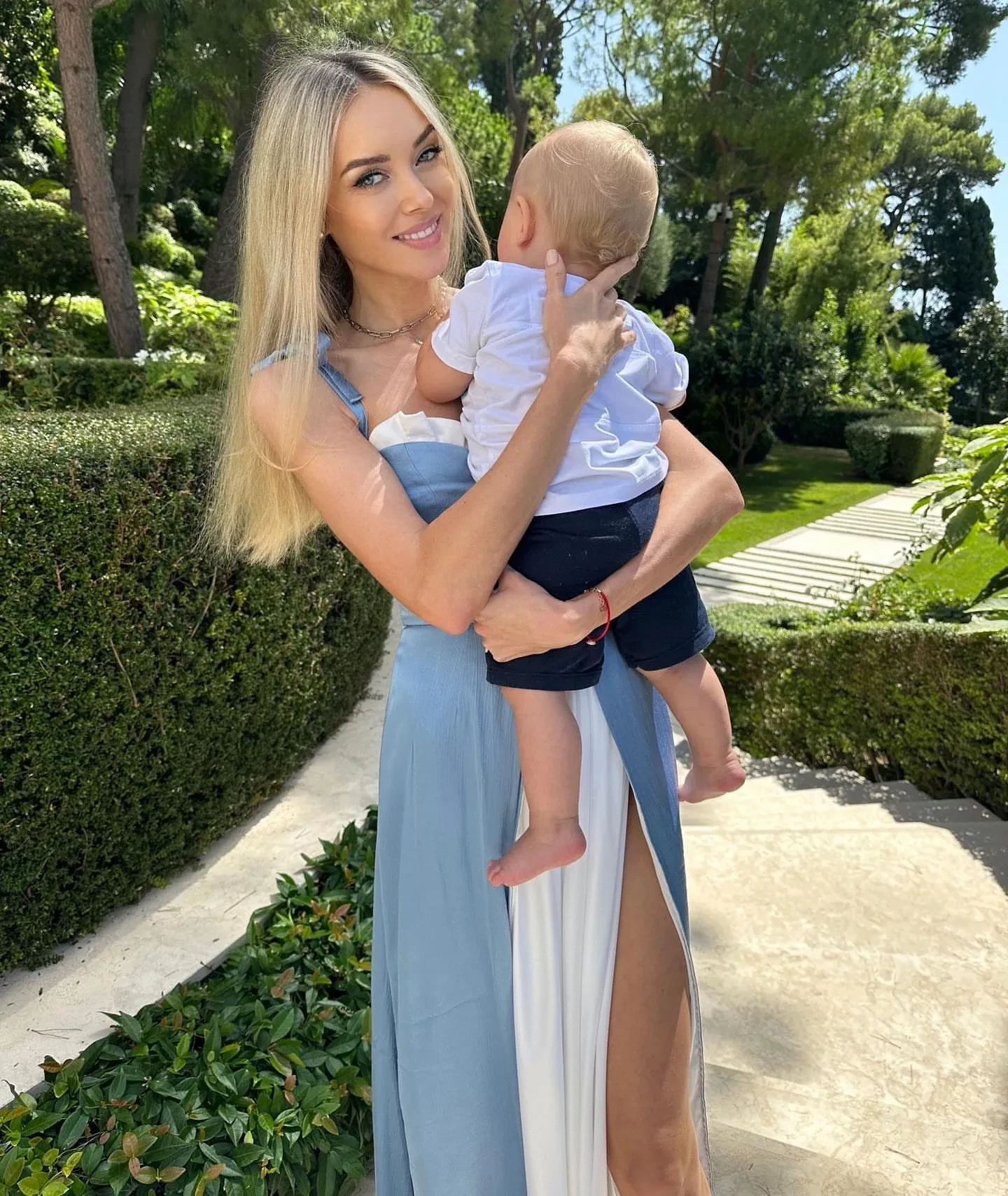 Ксения Сухинова с новорождённым сыномО том, что Сухинова станет мамой во второй раз, стало известно в мае во время гала-ужина amfAR в Каннах. Имя отца ребёнка она не раскрыла, однако известно, что у неё уже есть сын Артём от водочного магната Юрия Шефлера*.