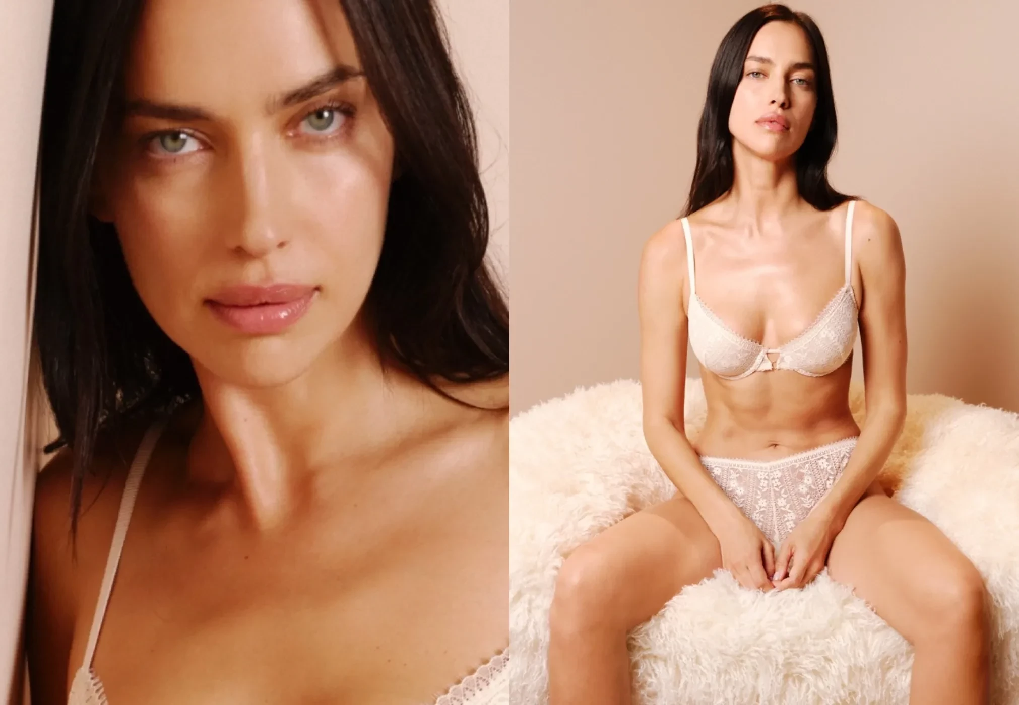 39-летняя Ирина Шейк, которая недавно украсила обложку бразильского Vogue, стала лицом новой коллекции бренда Etam и снялась в рекламной кампании в нижнем белье. Российская модель примерила несколько хлопковых комплектов и кружевное бельё из линейки J'Etam.