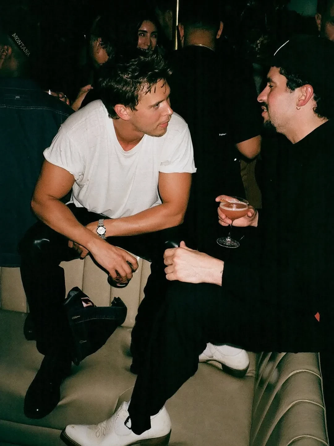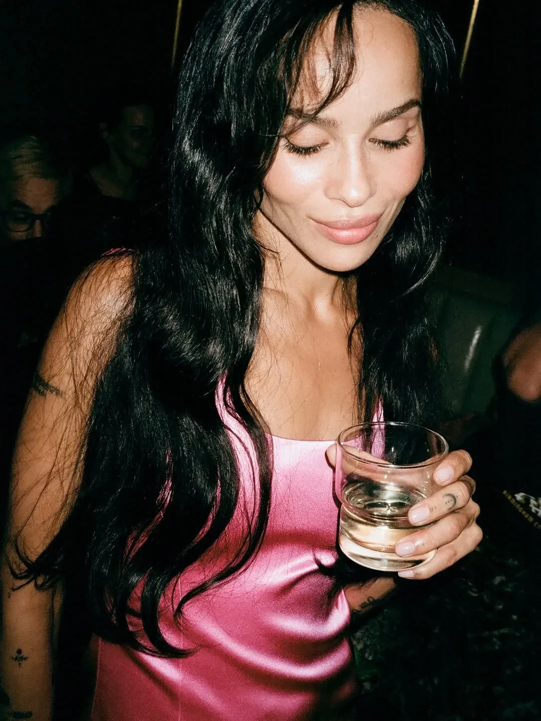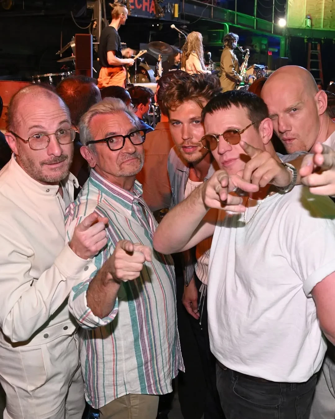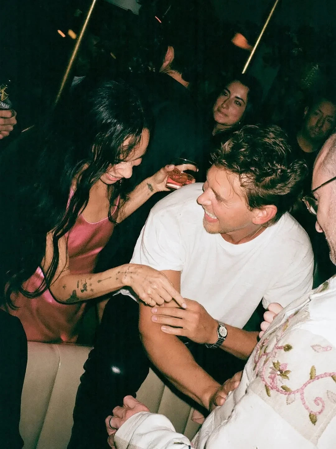 Зои Кравиц и Остин БатлерЧуть ранее съёмочная группа устроила перформанс в одном из баров города. Здесь играли музыканты, Кукушкин* устроил небольшое представление.