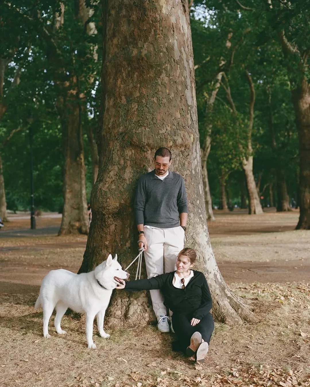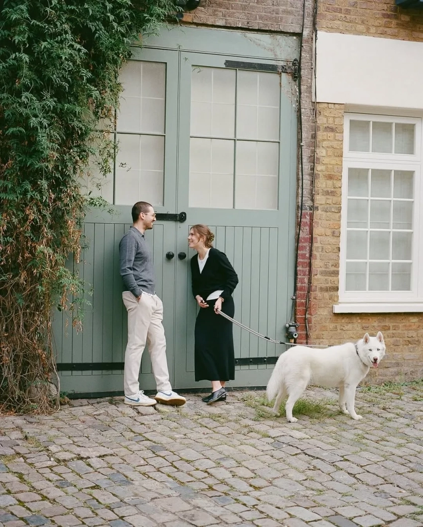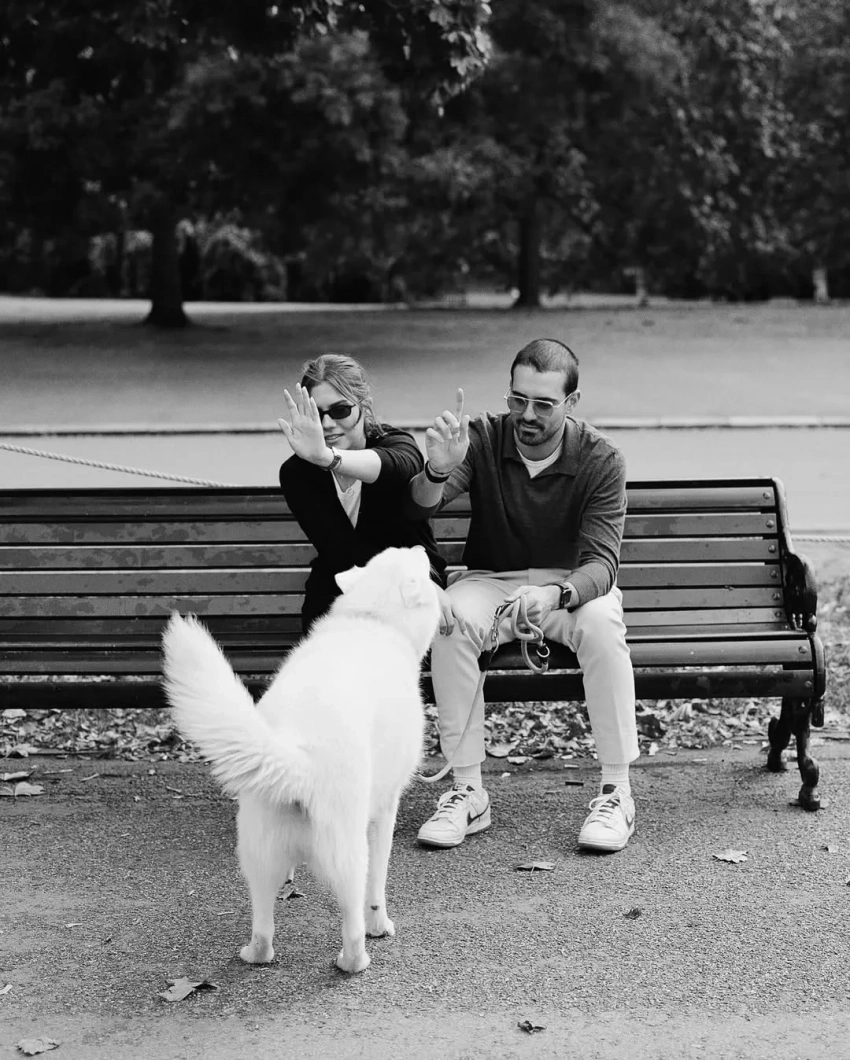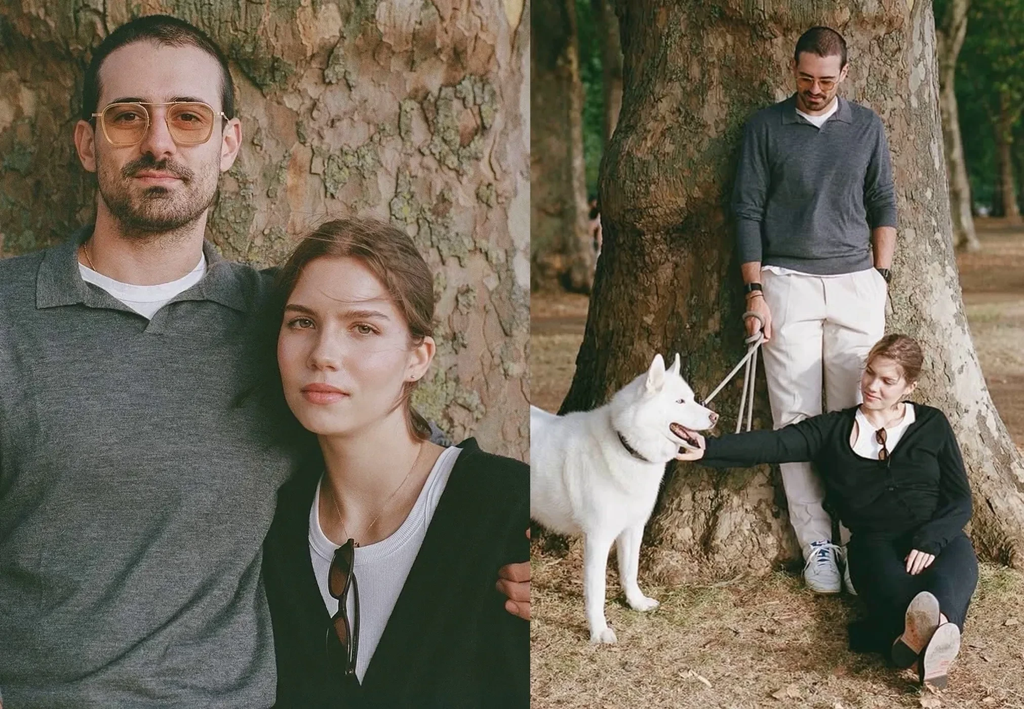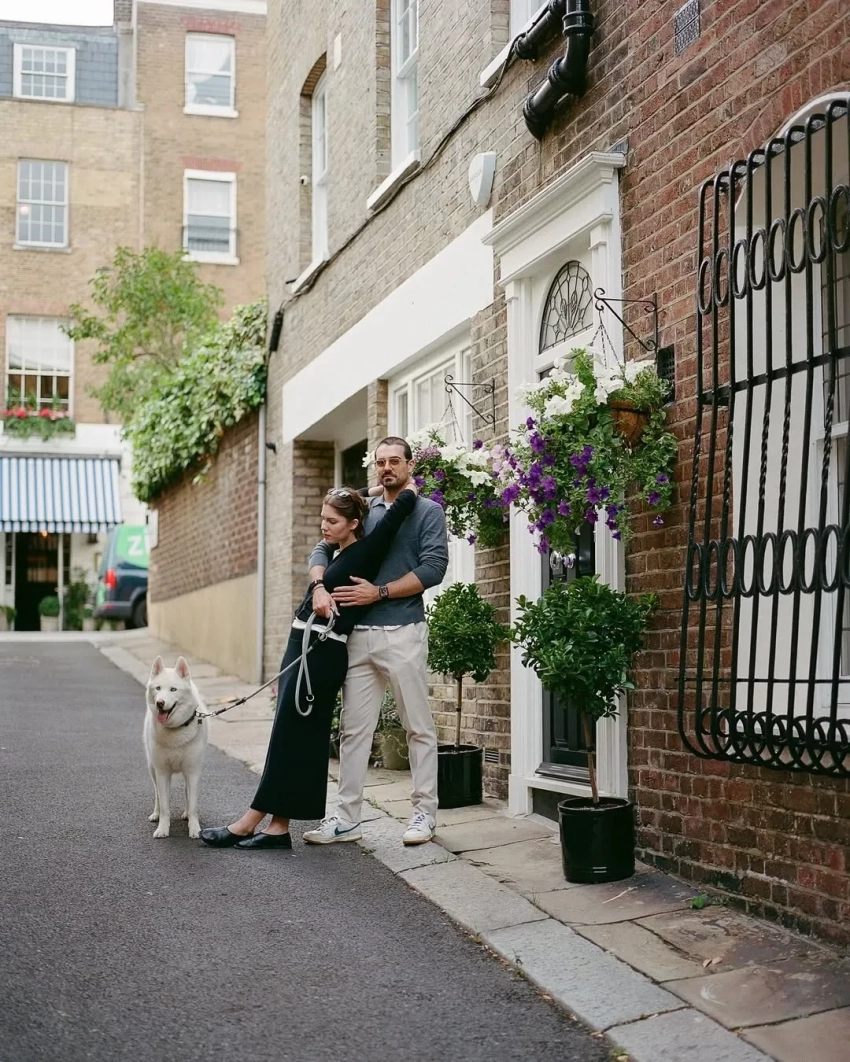 Автором снимков выступила фотограф из Москвы Мария Федина. На них Юмашева и Березовский позируют на фоне городских пейзажей вдвоем и со своим питомцем — собакой породы сибирская хаски.