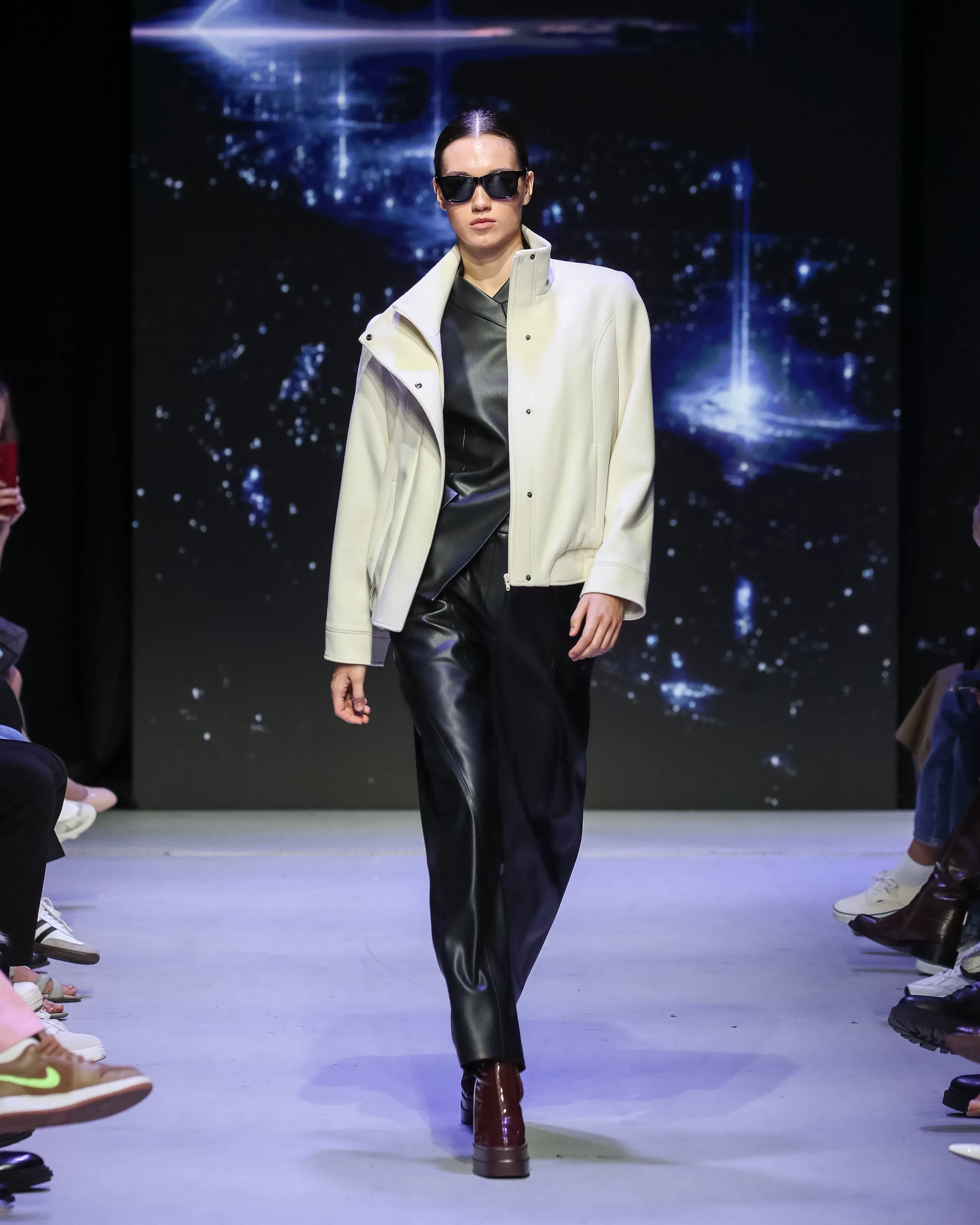 Показ MasterpeaceПоказ MasterpeaceПоказ MasterpeaceКроме этого, запомнился показ Roshi. Московский бренд показал коллекцию, вдохновлённую футуристичной архитектурой. Дизайнер сделал акцент на костюмах и верхней одежде, добавив комплекты из плотного хлопка и кожи с геометричными линиями. В коллекцию вошли кожаные платья, рубашки прямого кроя и свободные косухи. Финалом показа стало появление певца Мити Фомина, который вышел на подиум вместе со своим питомцем.