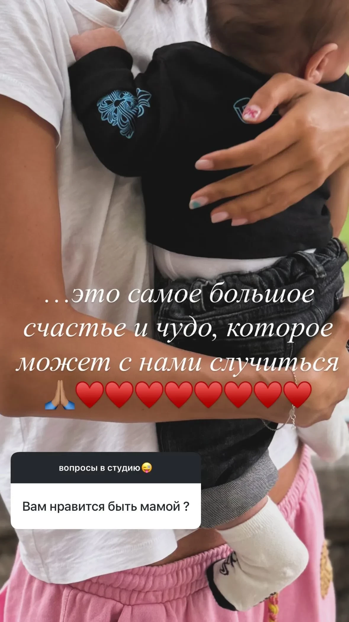 Надежда Оболенцева с сыномТакже Оболенцева ответила на вопрос, нравится ли ей быть матерью. "Это самое большое счастье и чудо, которое может с нами случиться". Она добавила, что с четырёхмесячным ребёнком ей не бывает скучно.